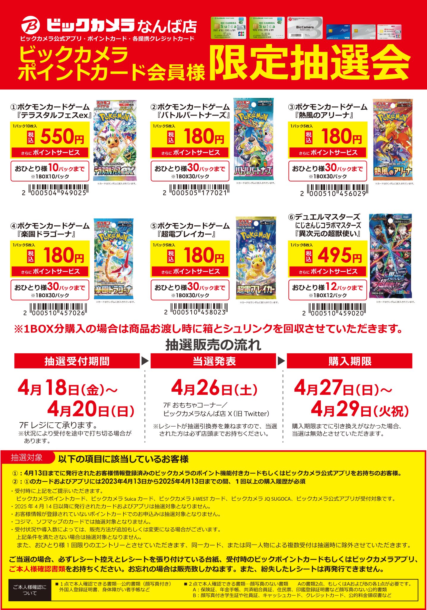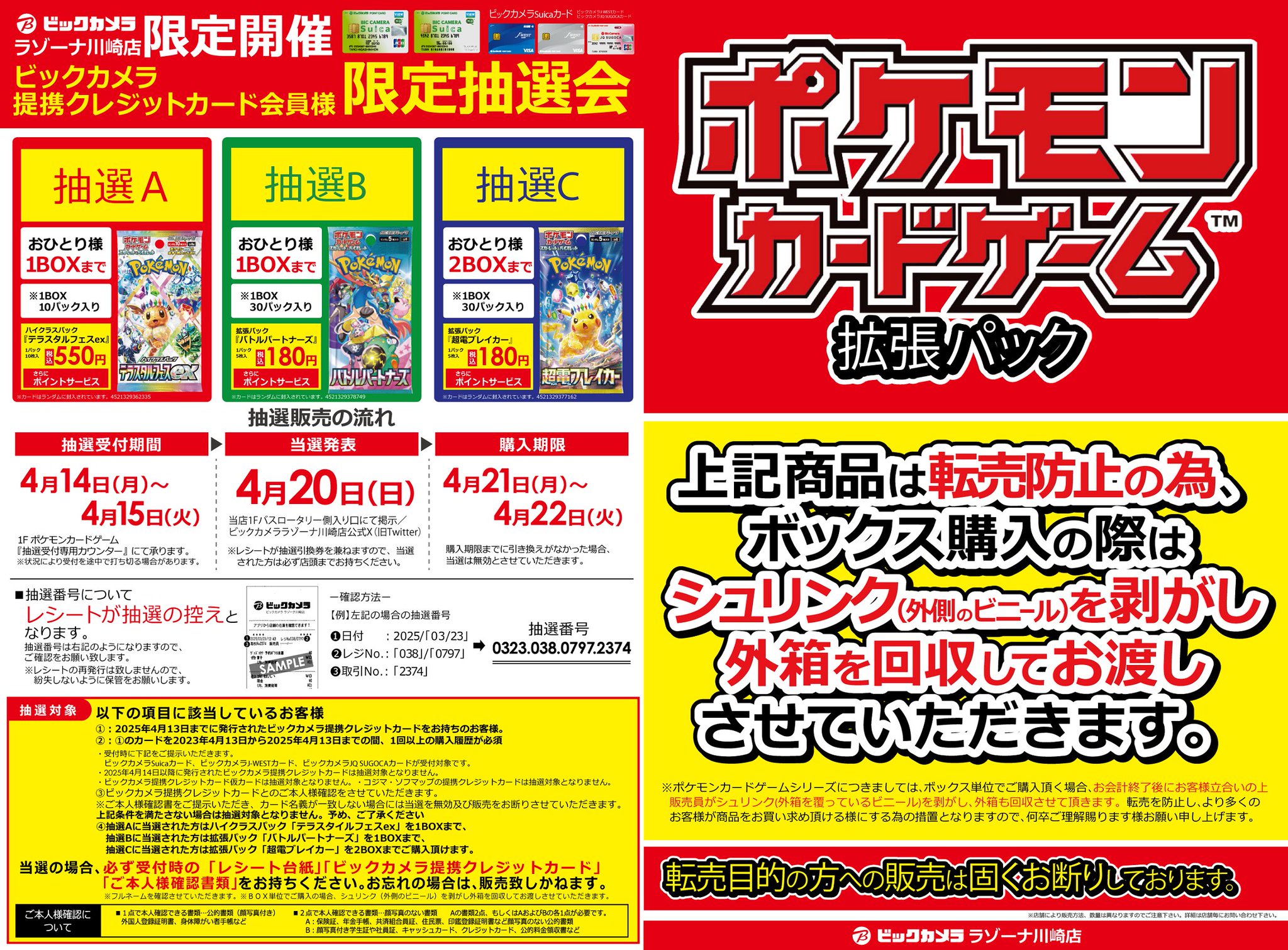 『ビックカメラ(コジマ含む)』店頭でのポケカ、ワンピースカード、遊戯王カードのゲリラ販売情報。転売屋に負けずに定価入手する為の支援を実施✨