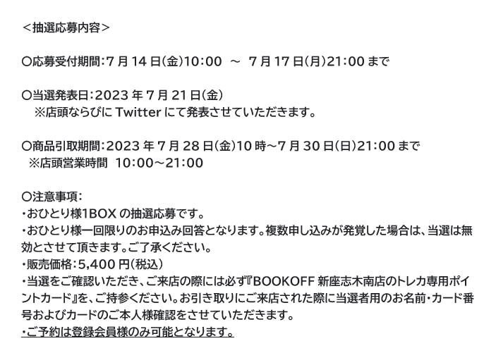 BOOK OFF店舗の公式Twitterにて抽選方法発表