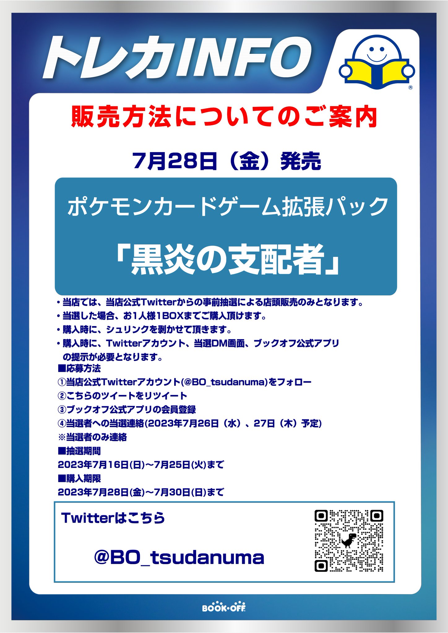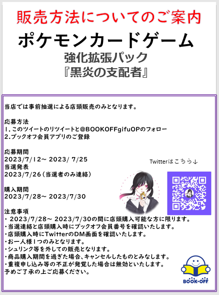 2023年7月上旬からブックオフの各店公式ツイッターアカウントにて、「黒炎の支配者」の抽選方針が順次発表されています!
