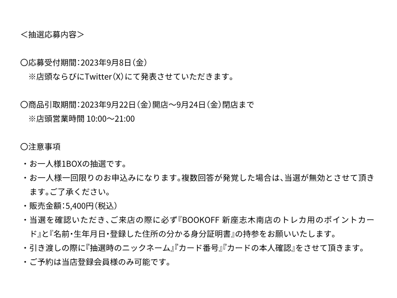 ■ブックオフ屋島 X(Twitter)無しですが、抽選予約スタート