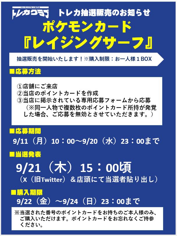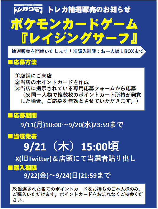 『レイジングサーフ』は、発売日前の抽選販売だけではなく、発売日当日、発売日以降のゲリラ販売でも可能です。