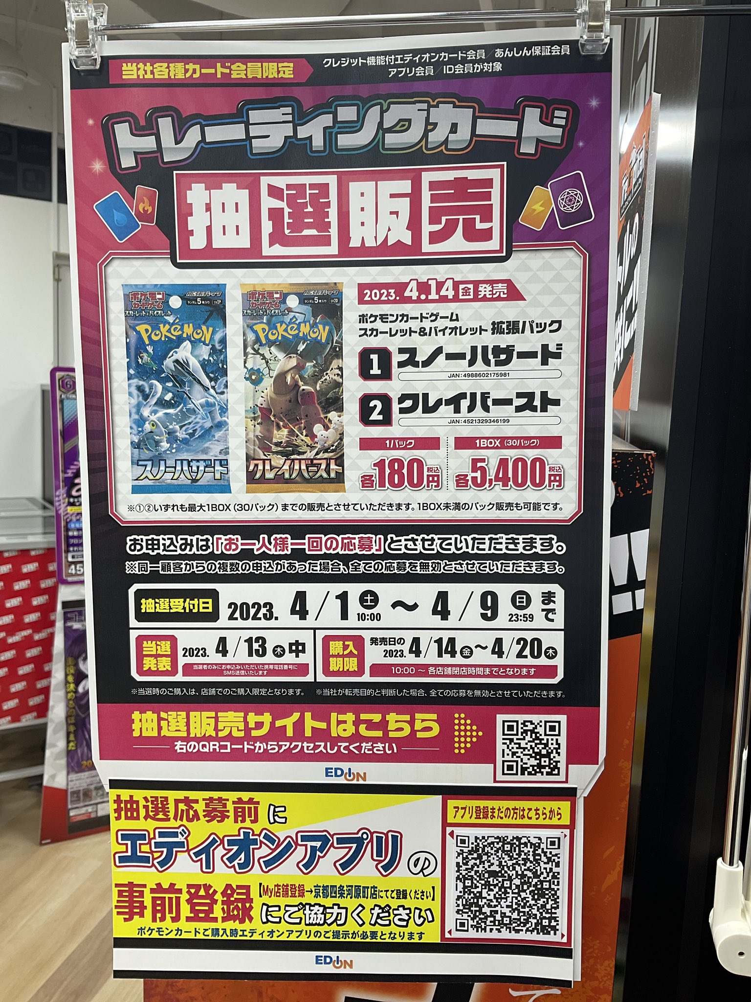 家電量販店「エディオン」にて、人気ポケモンカードの抽選販売が開始されました!