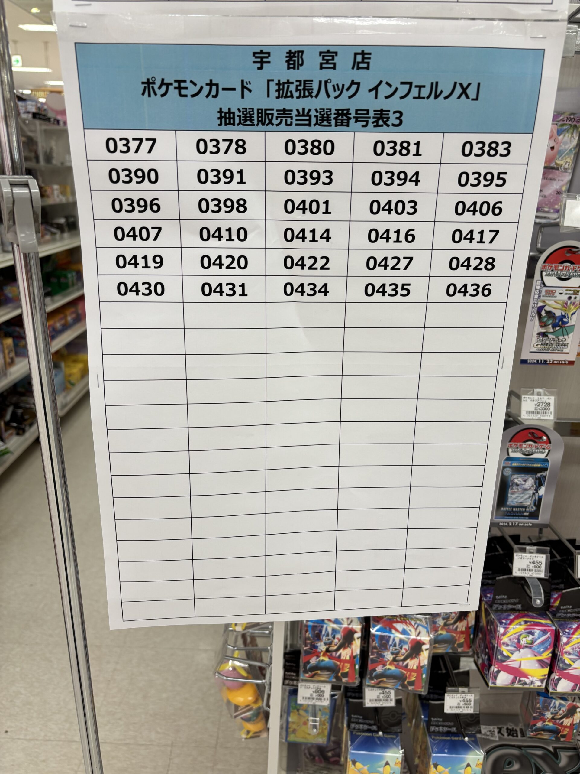 各店舗の店頭ボードに張り出される当選番号の共有も同じく当ページの最下部にて共有を行えればと考えております。