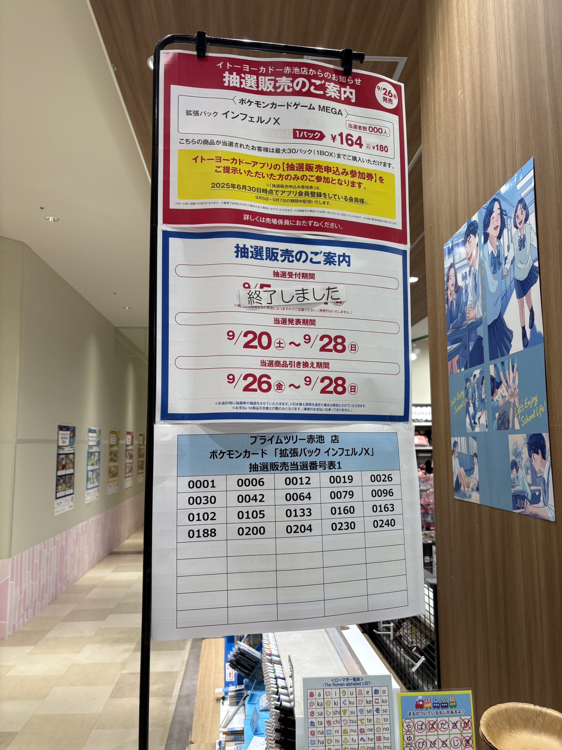 - 当選発表期間中に、店頭のボードに張り出される抽選番号を確認し、当選を確認する