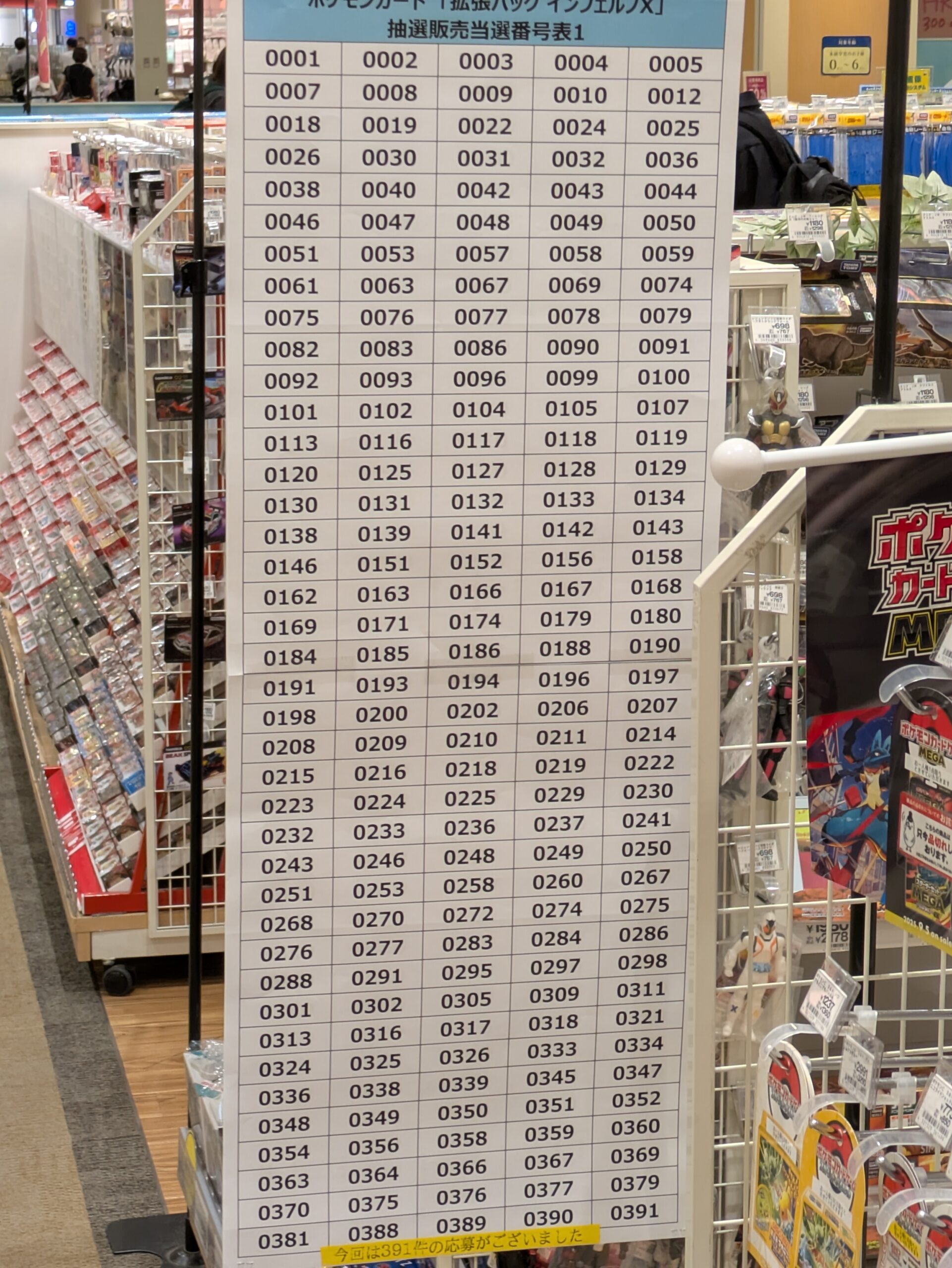 - 当選発表期間中に、店頭のボードに張り出される抽選番号を確認し、当選を確認する