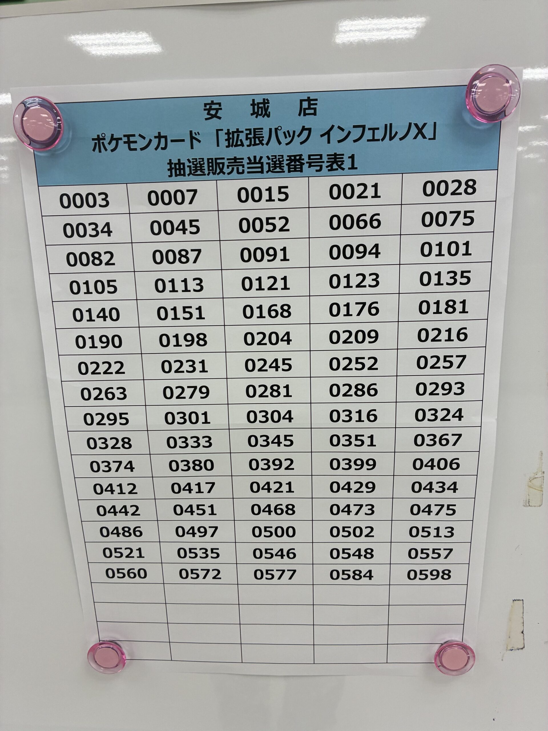 各店舗の店頭ボードに張り出される当選番号の共有も同じく当ページの最下部にて共有を行えればと考えております。