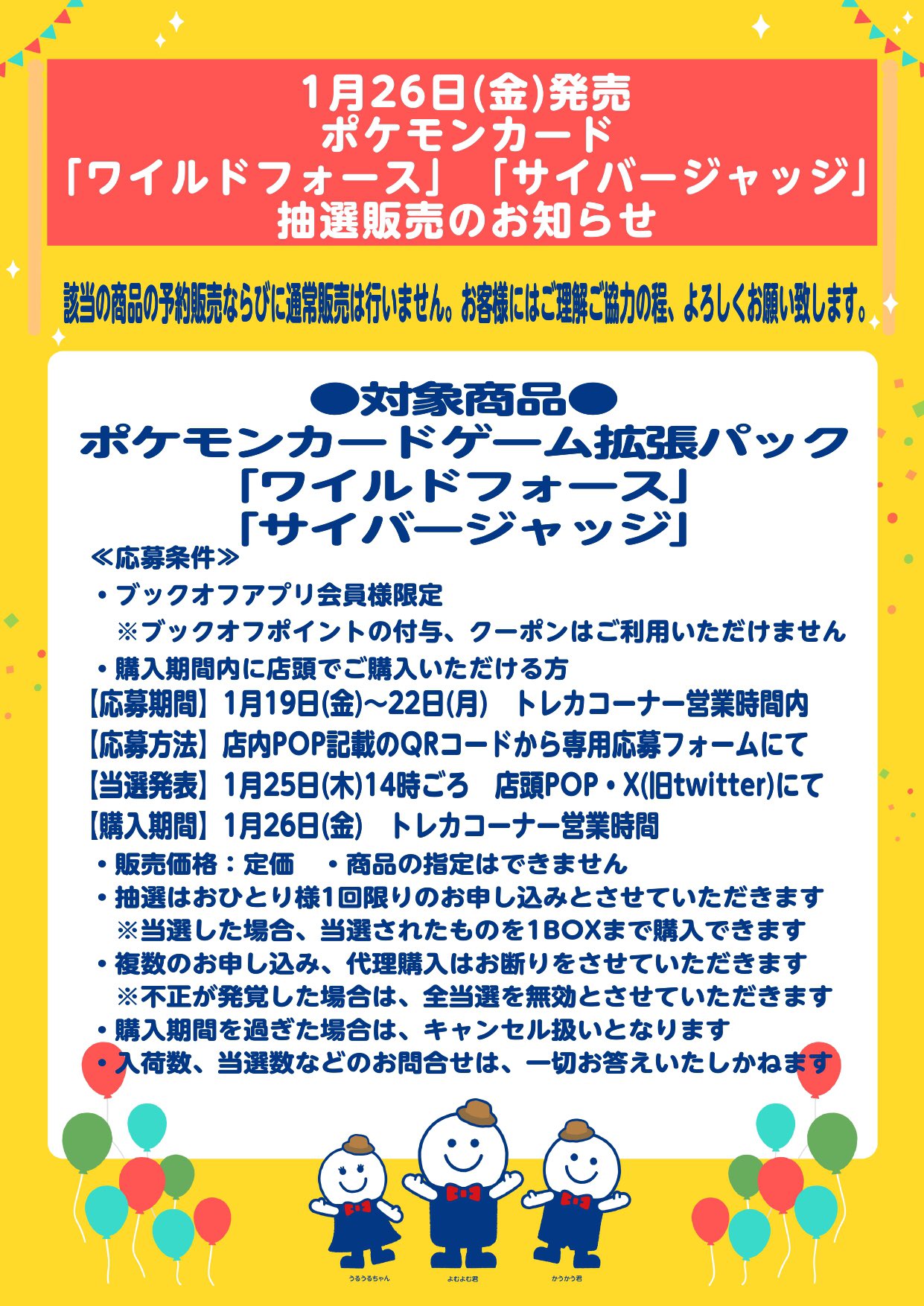 ポケモンカードゲーム スカーレット&バイオレット 拡張パック『サイバージャッジ』『ワイルドフォース』のブックオフ(BOOK OFF)各店舗での抽選が開始されました!