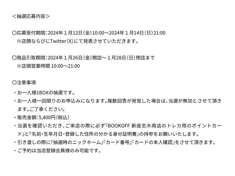 BOOKOFF(ブックオフ)各店舗の抽選申込概要