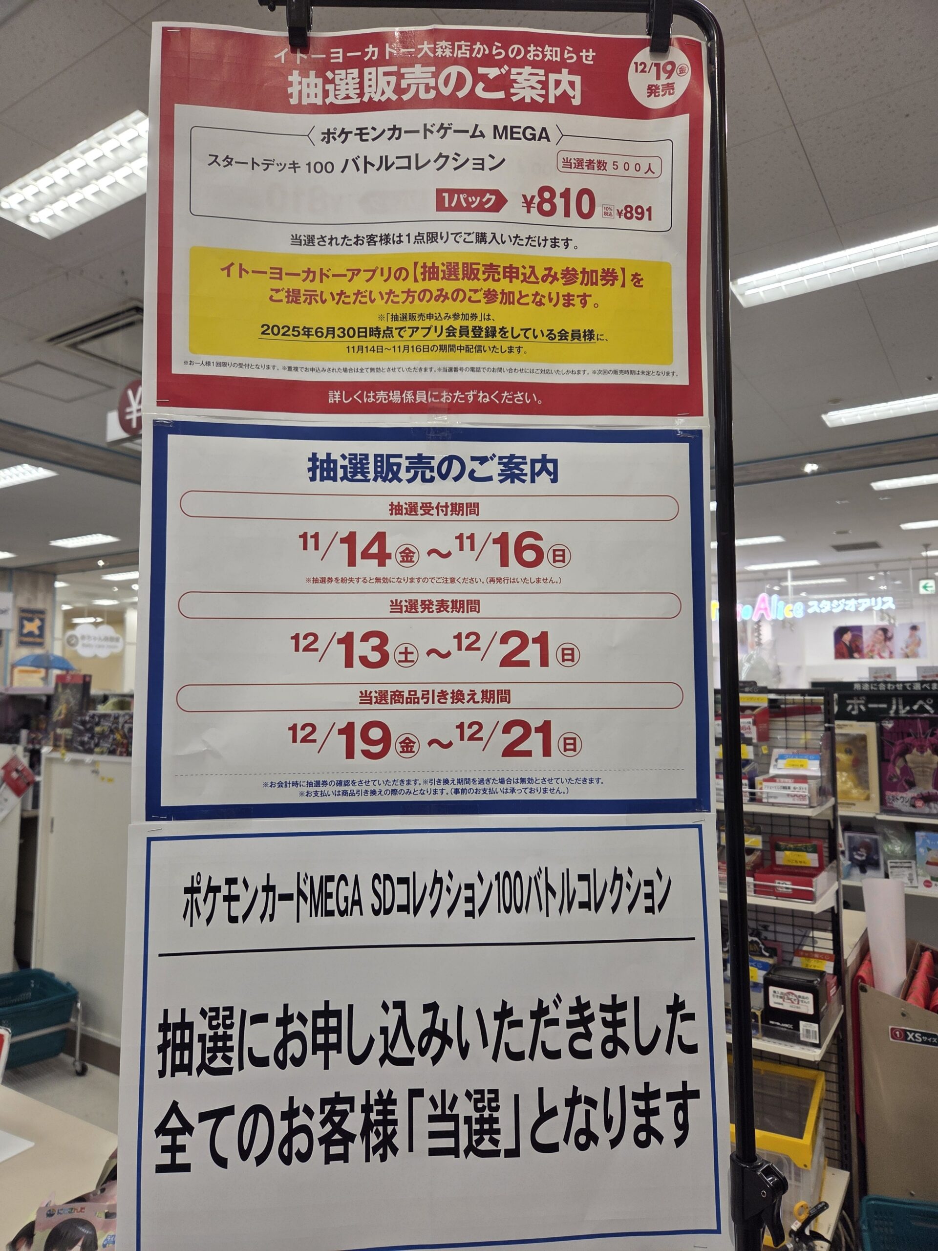 アリオ、イトーヨーカドーでは、店頭下記の条件で抽選での予約受付が開始となりました。