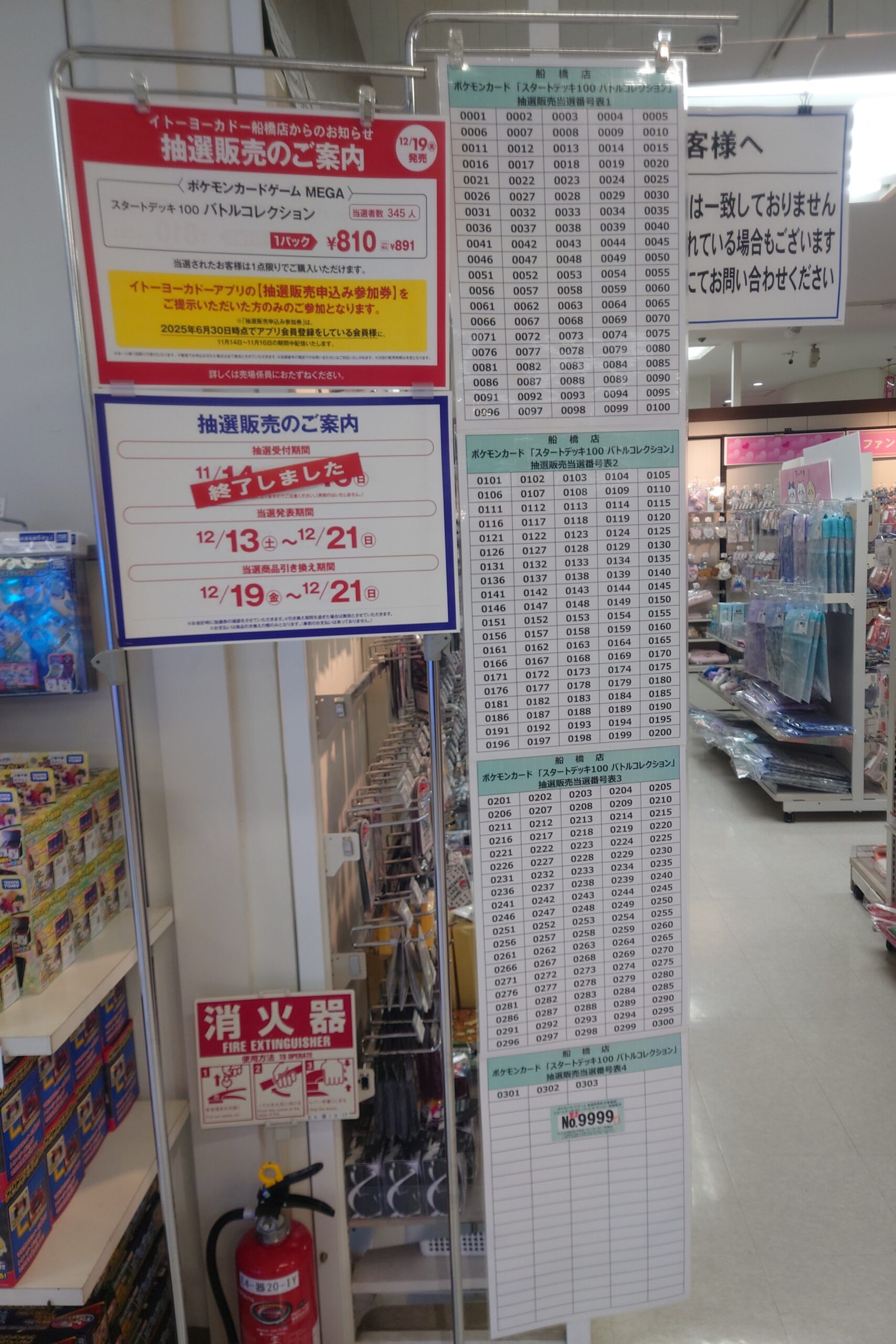 - 当選発表期間中に、店頭のボードに張り出される抽選番号を確認し、当選を確認する