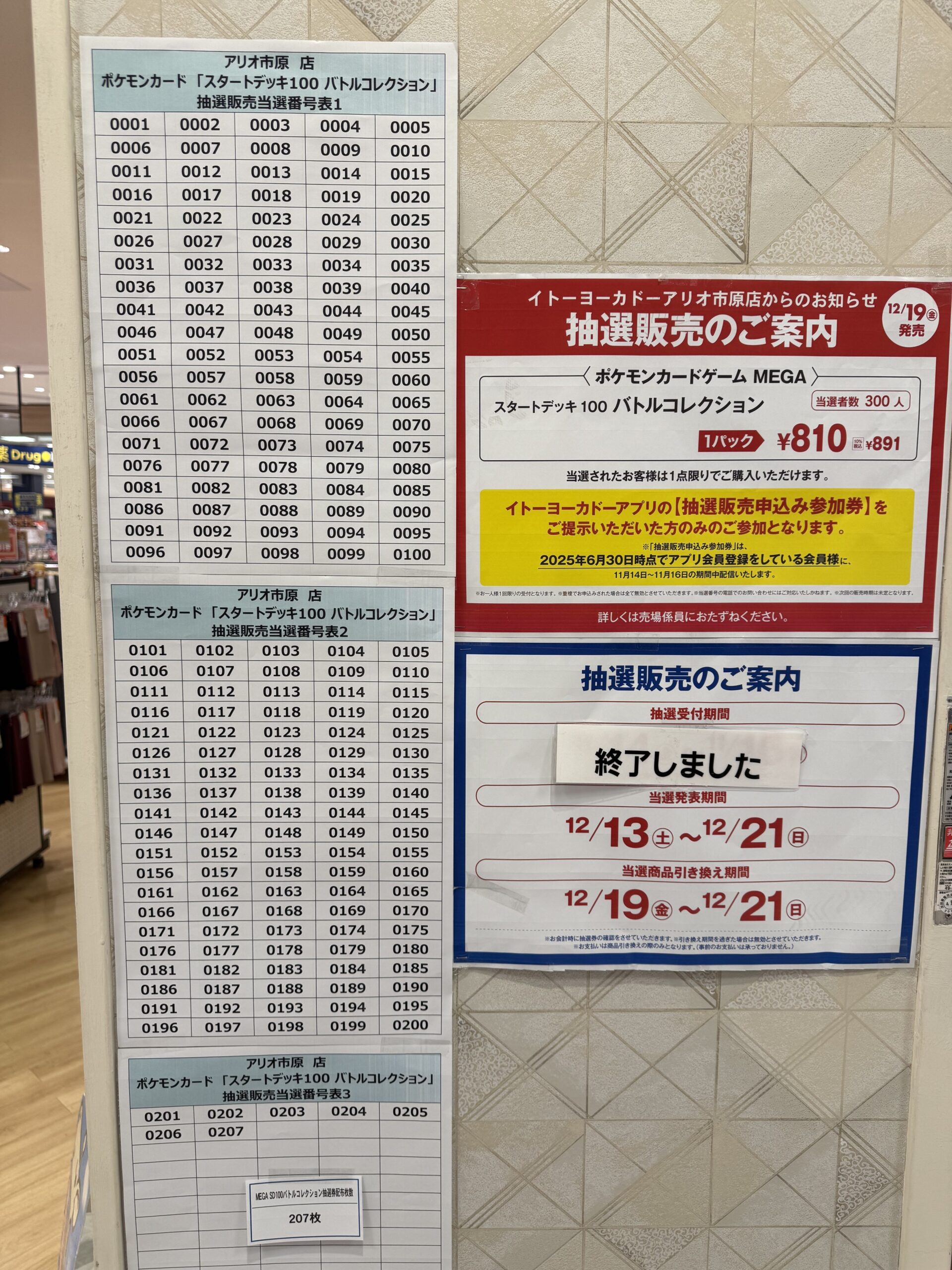 スタートデッキですが1番から208番まで全ての番号が書かれていたため、全員当選だと思われます。