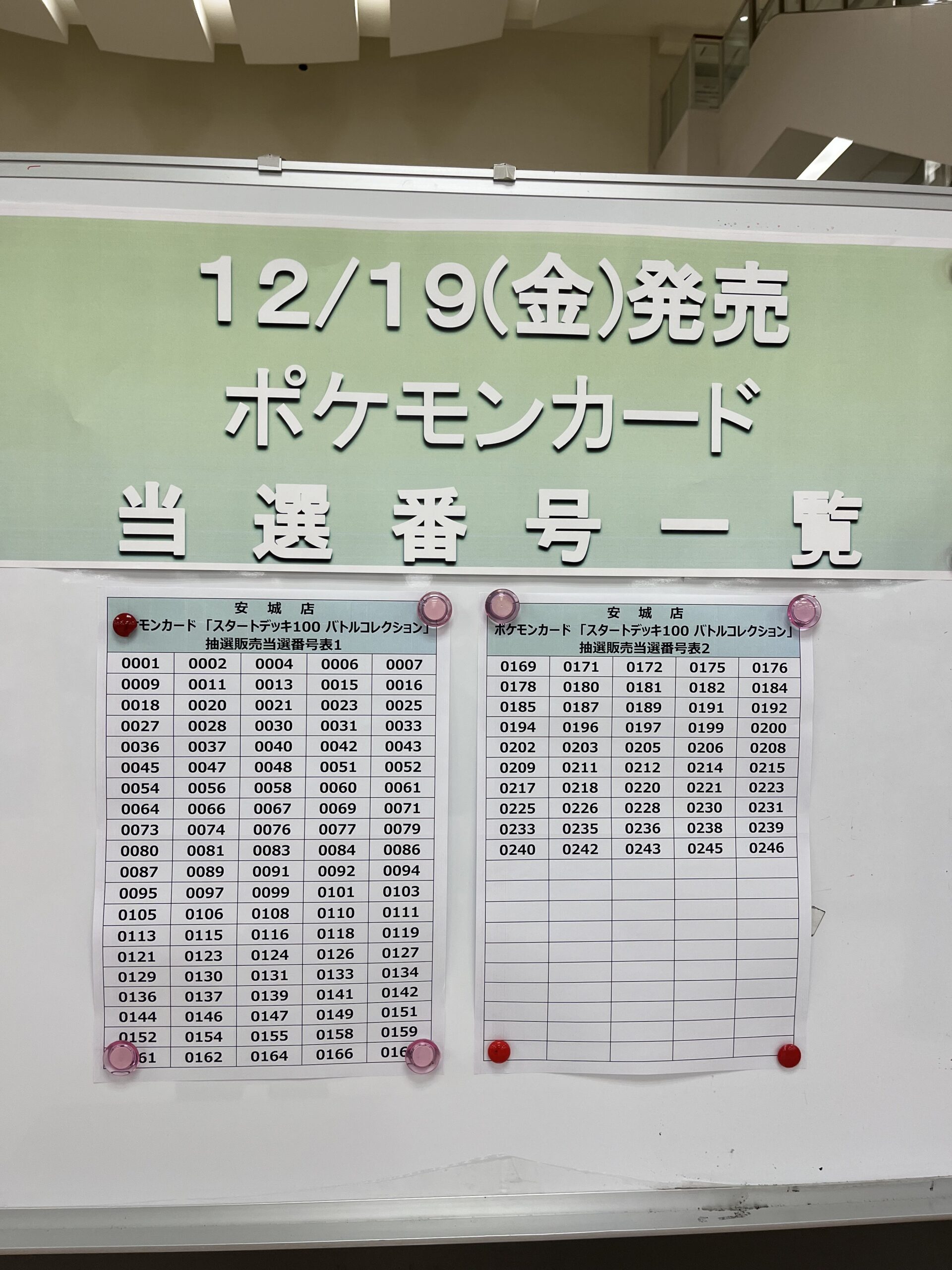 各店舗の店頭ボードに張り出される当選番号の共有も同じく当ページの最下部にて共有を行えればと考えております。