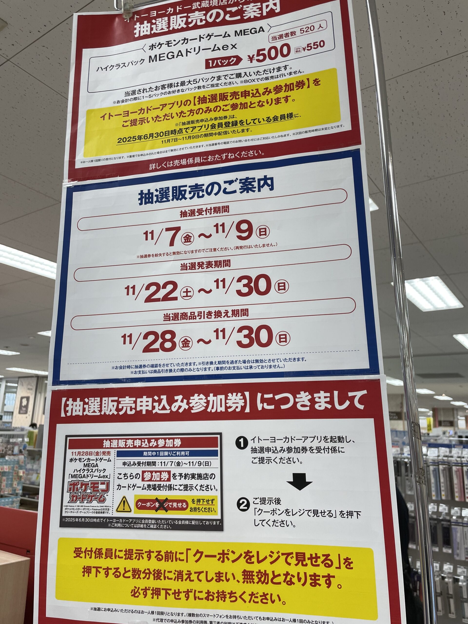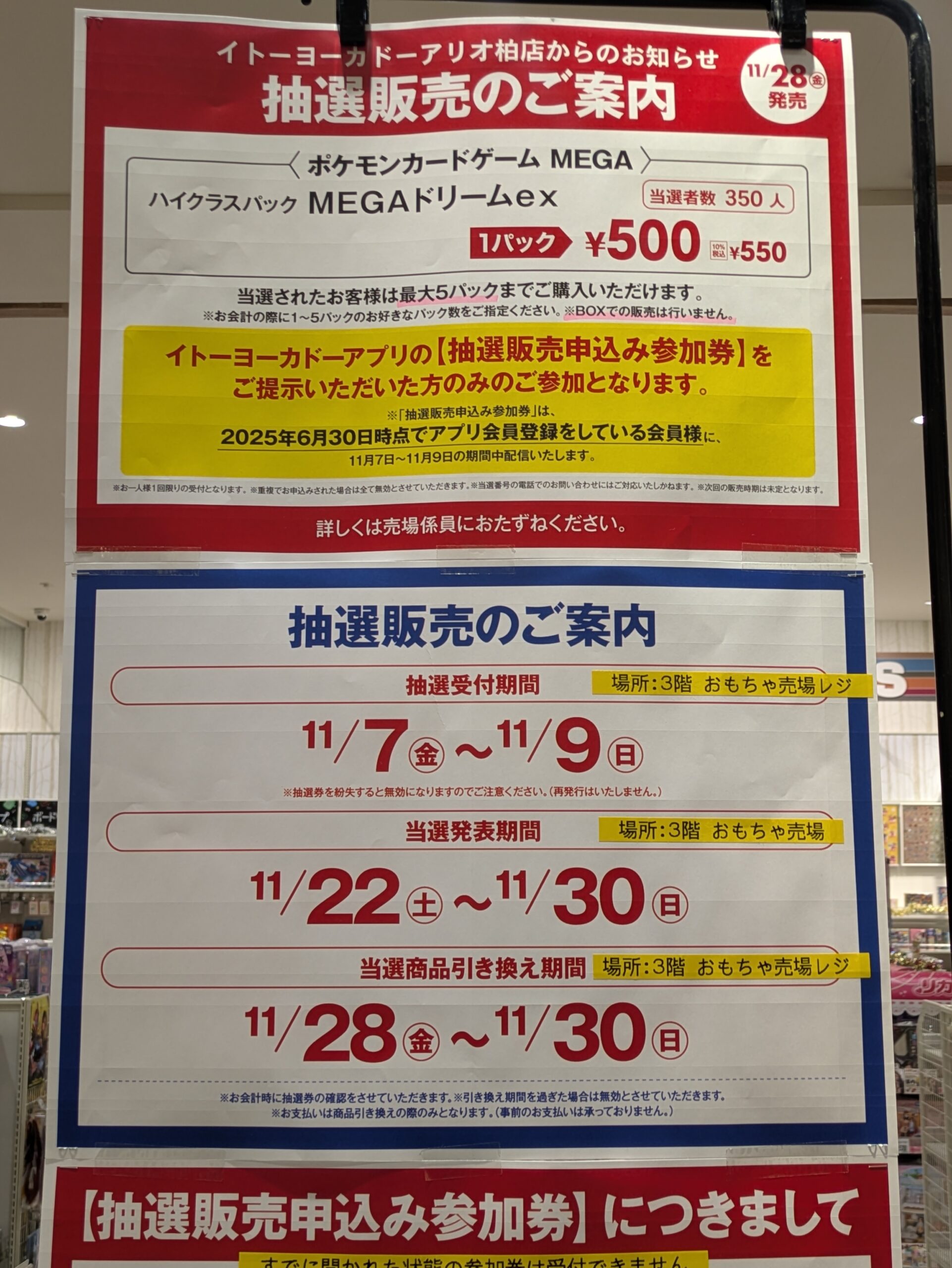 ポケモンカードゲーム スカーレット&バイオレット ハイクラスパック『MEGAドリームex』が、イトーヨーカドー、アリオにて抽選予約での販売が開始となりました!