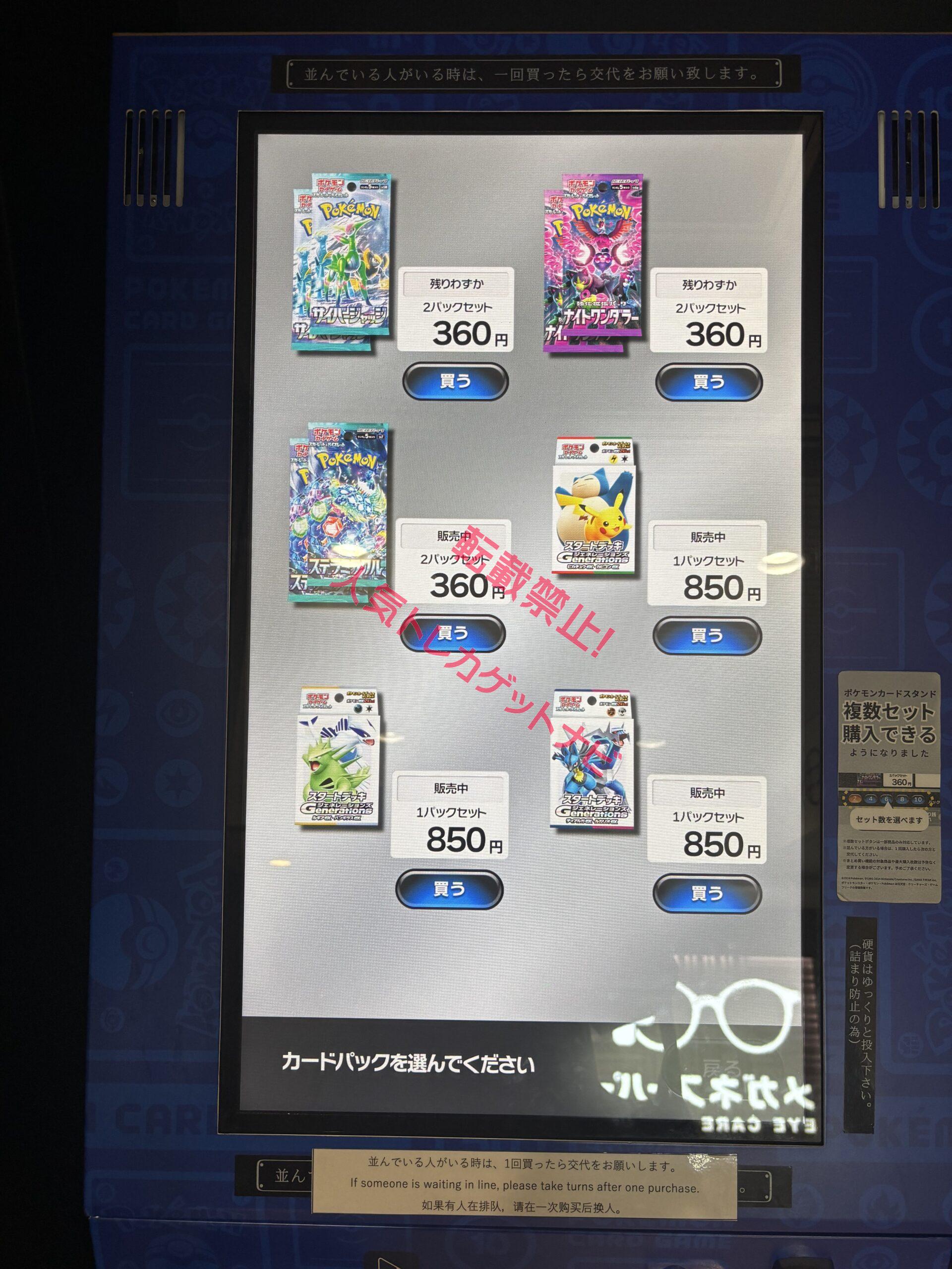 「ポケモンカードスタンド(ポケカ自販機)」、「ポケモンスタンド」とでも拡張パックの販売が行われています!