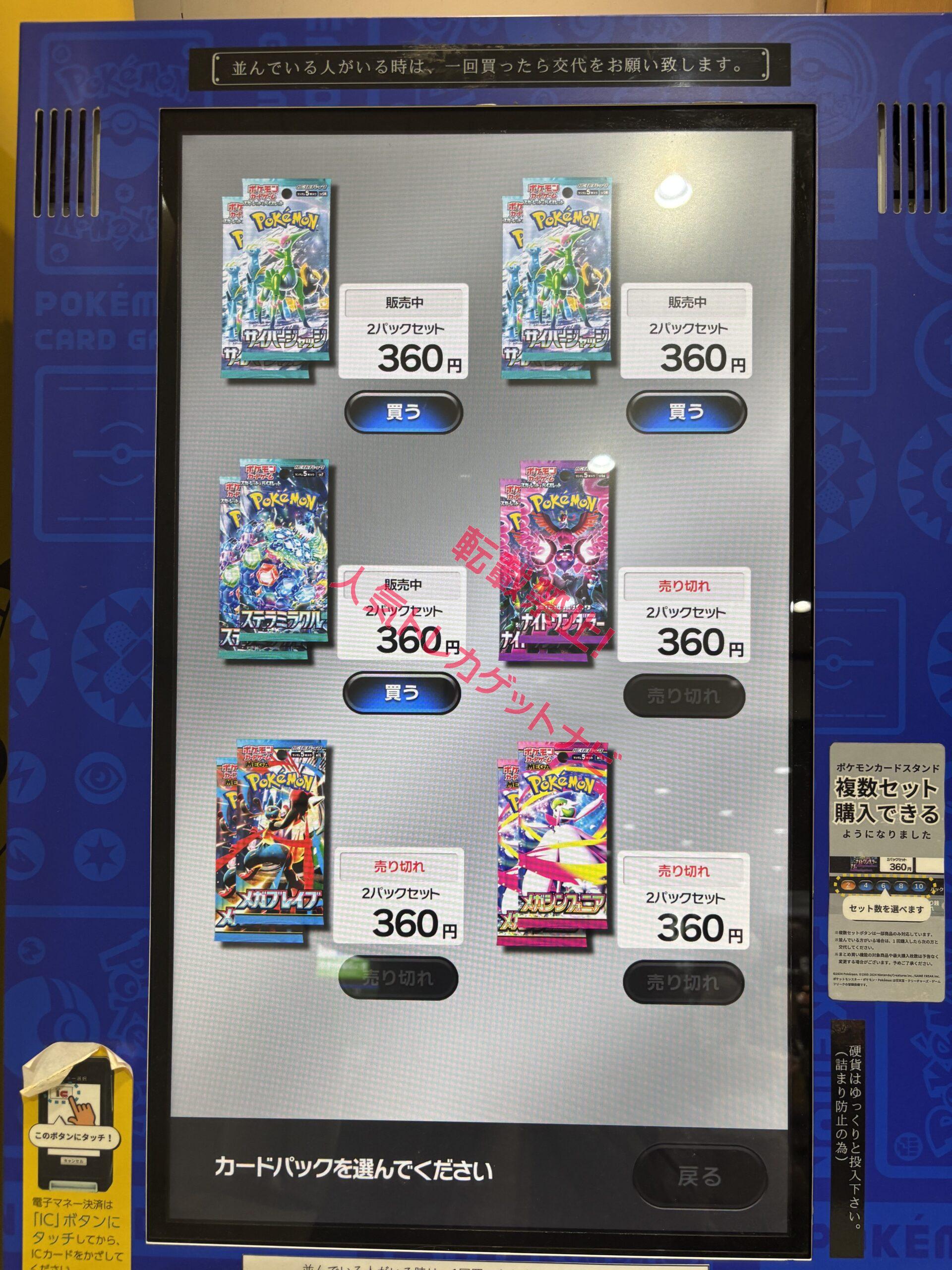 「ポケモンカードスタンド(ポケカ自販機)」、「ポケモンスタンド」とでも拡張パックの販売が行われています!