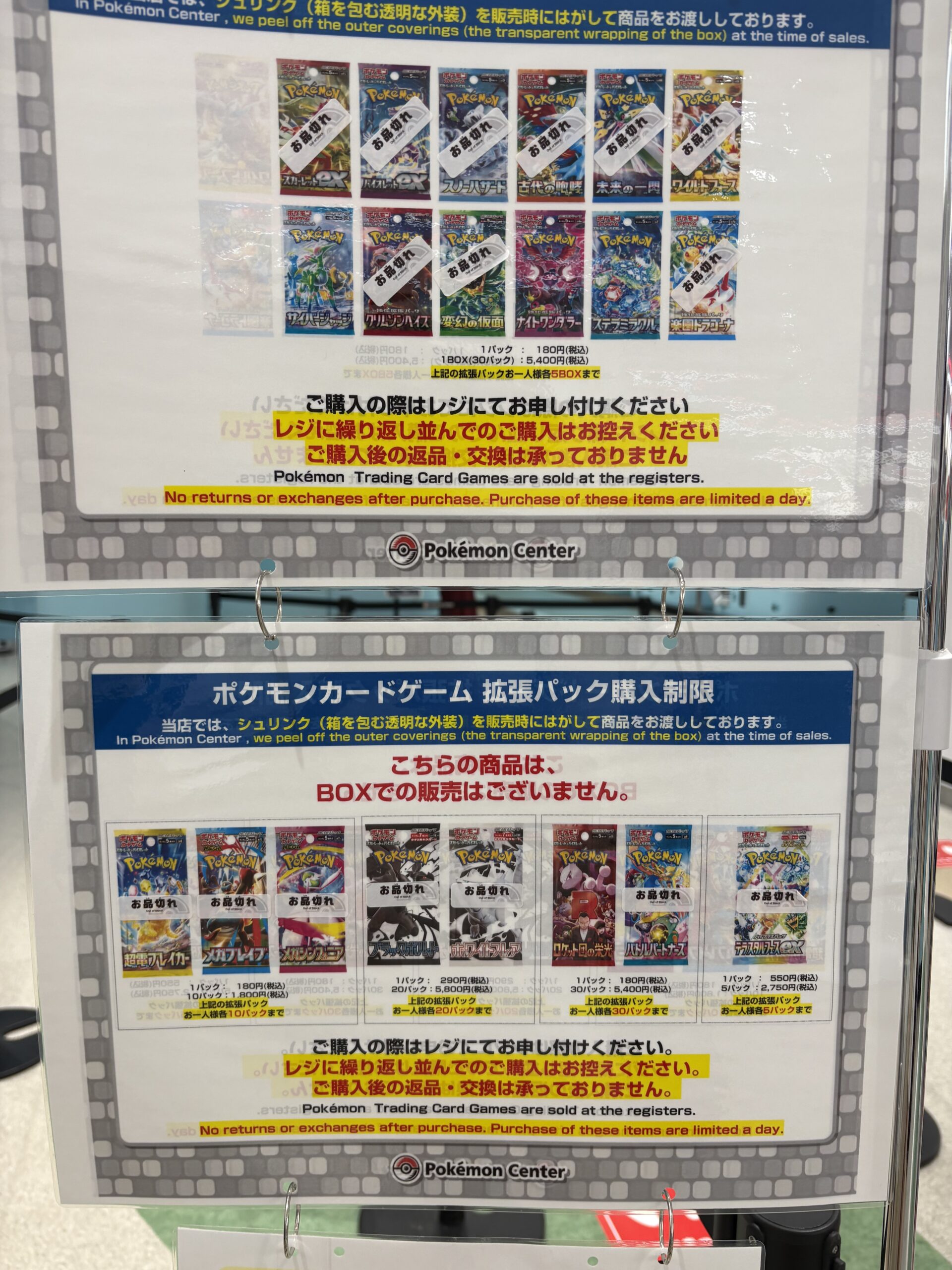 ポケカスタンドではパック販売が行われ、ポケモンスタンドではBOX(紙袋付き)販売となります。