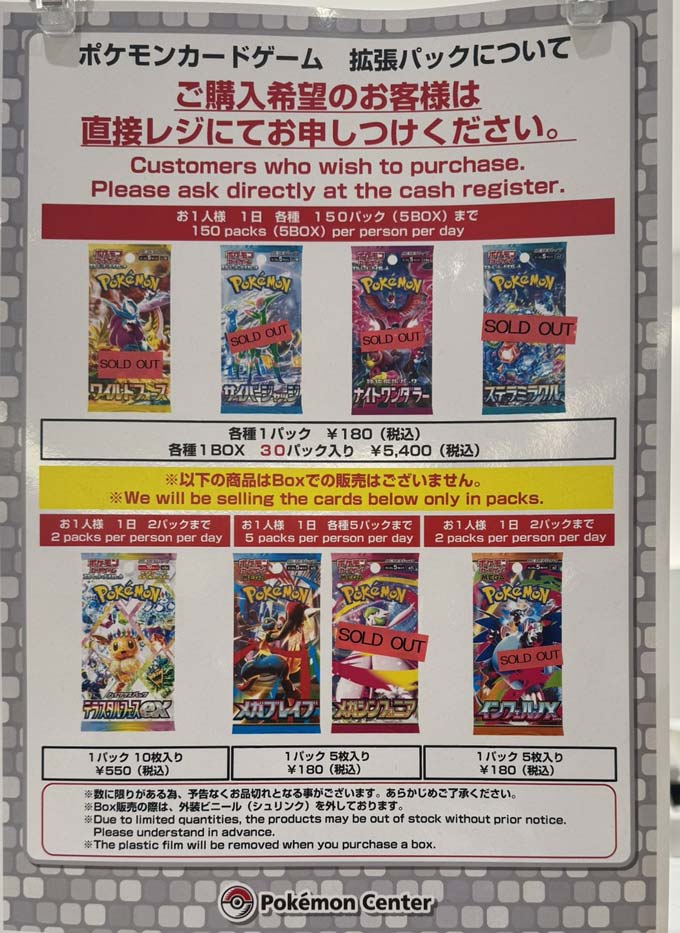 全国のポケセン店頭にて、定期的にポケモンカード拡張パックのゲリラ販売が実施されています。