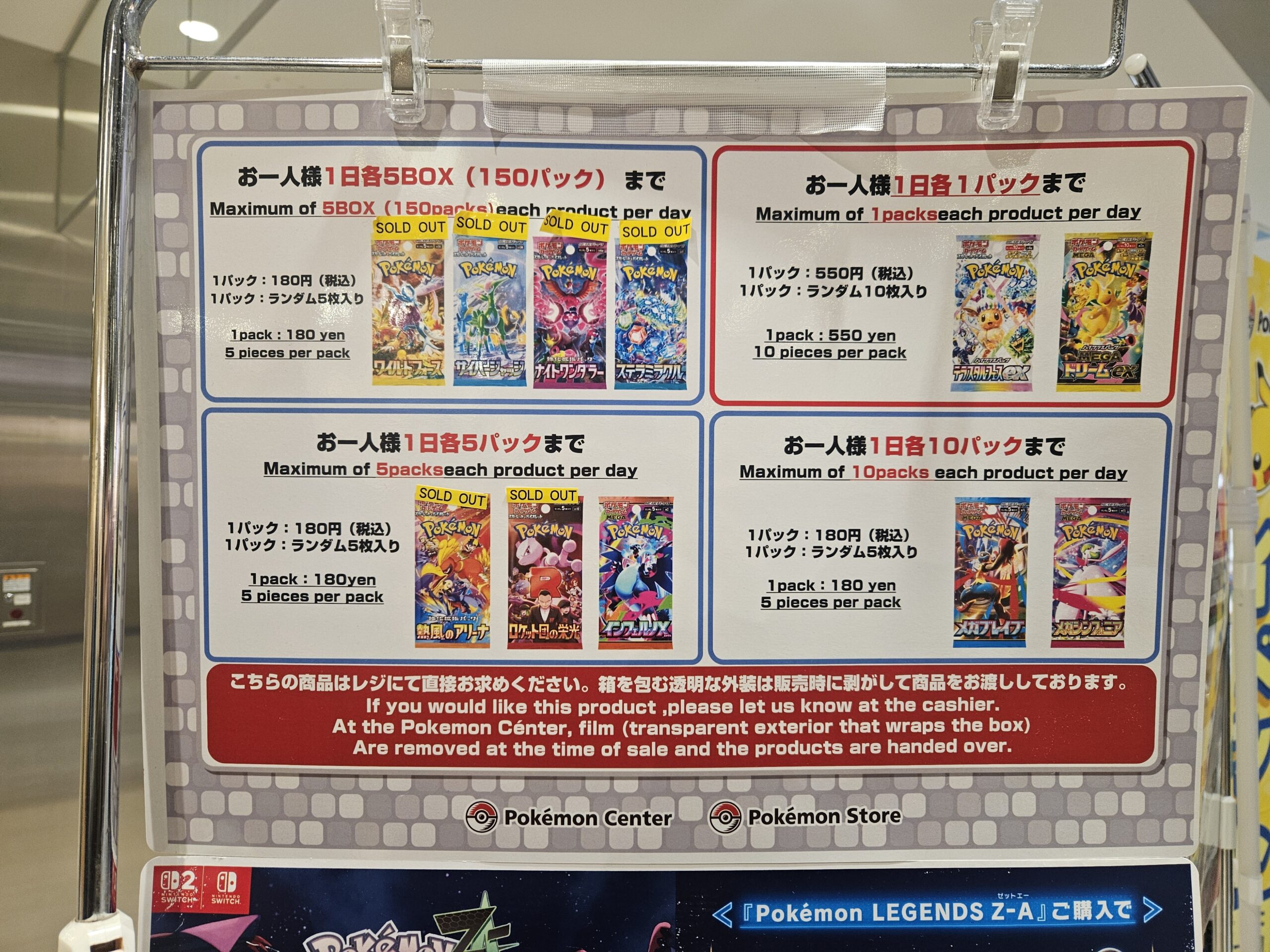 ポケカスタンドではパック販売が行われ、ポケモンスタンドではBOX(紙袋付き)販売となります。