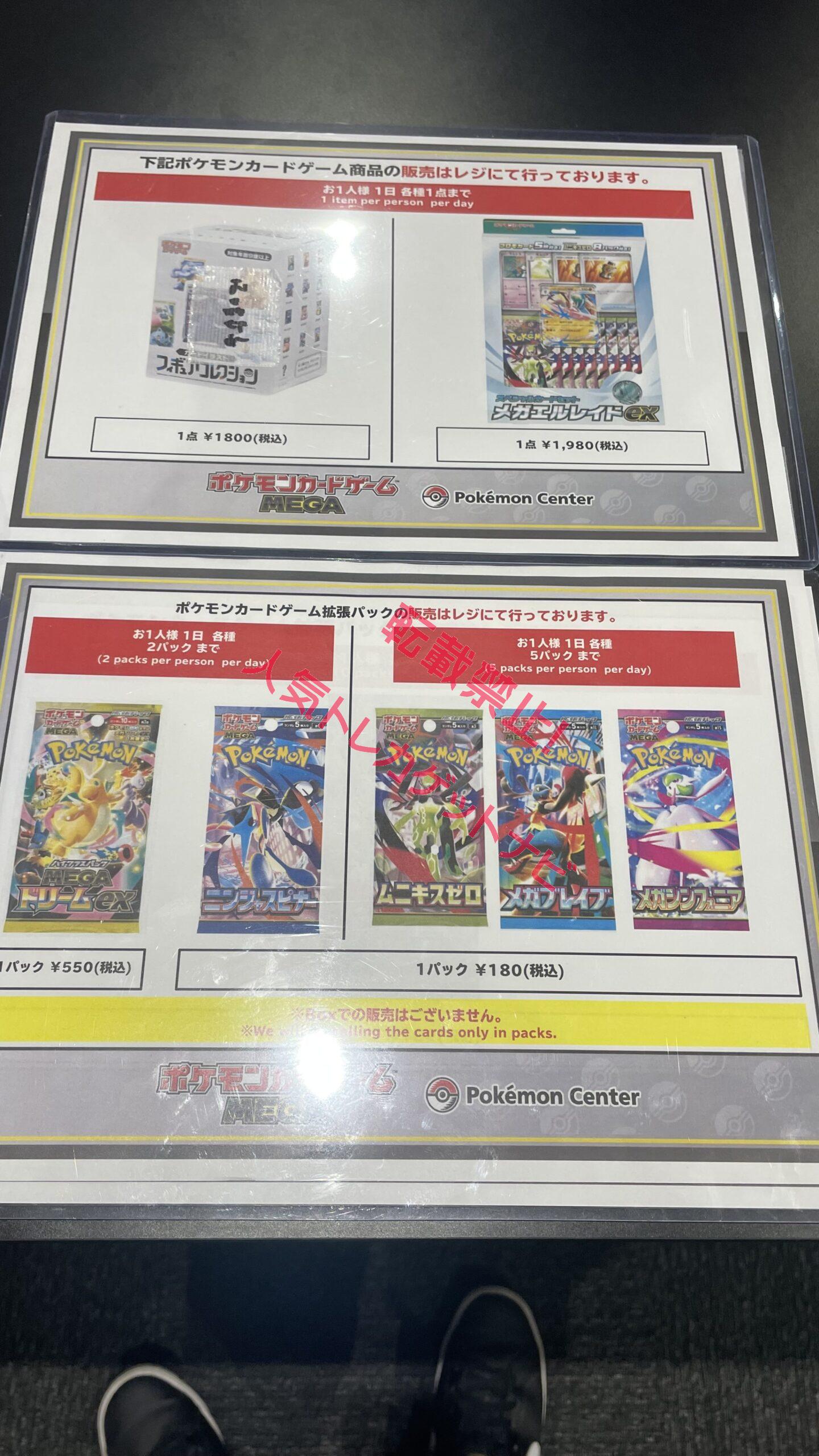 名古屋のポケモンセンターでフリー入場でニンジャスピナー10Pとムニキスゼロ30Pが買えるそうです