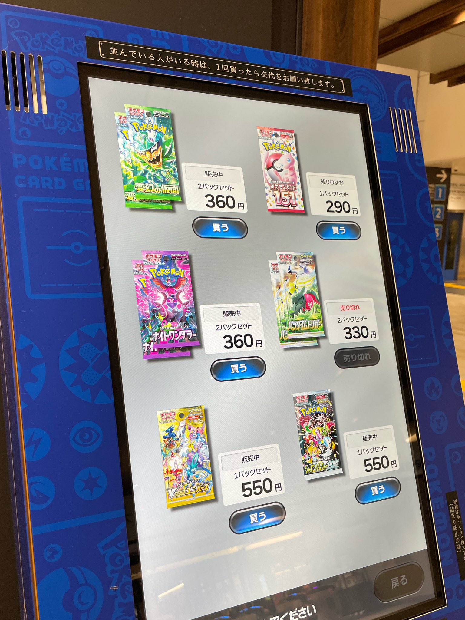 東武線のポケカスタンドは、一度に1パックしか買えない仕様に変更されたそうです!