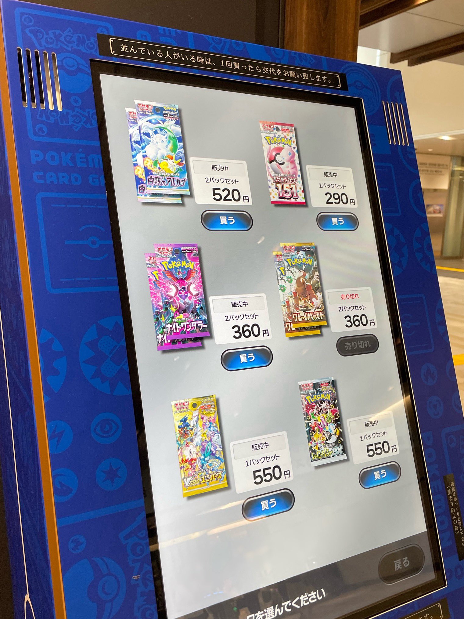 ポケカ自販機では、店頭で購入が難しい拡張パックの購入が可能です!