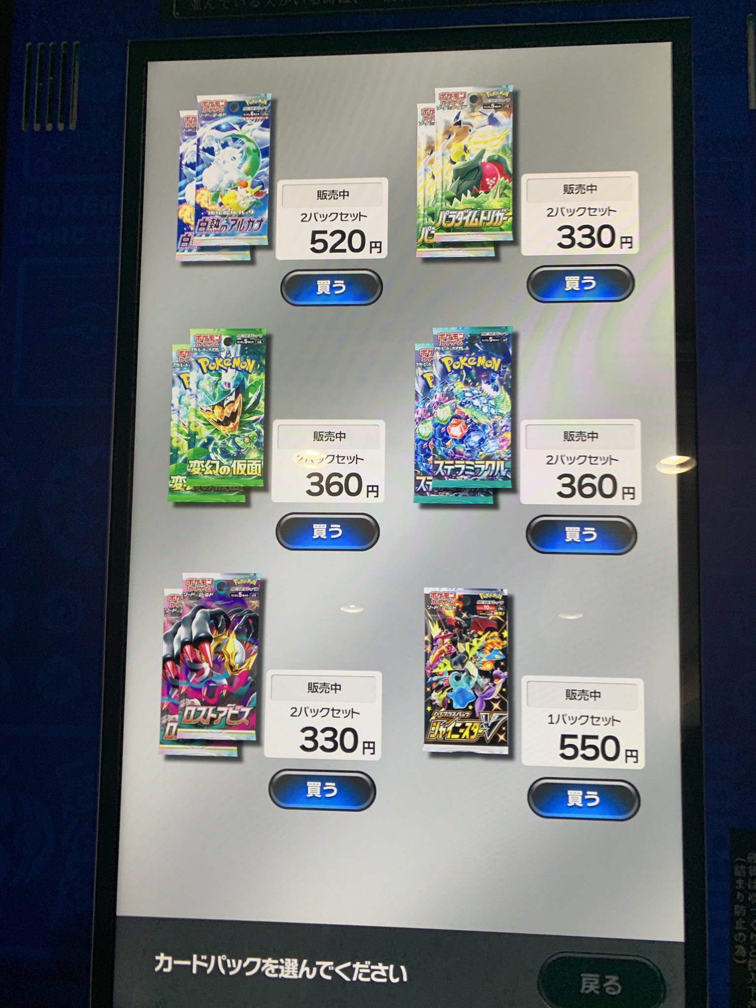ポケカ自販機では、店頭で購入が難しい拡張パックの購入が可能です!