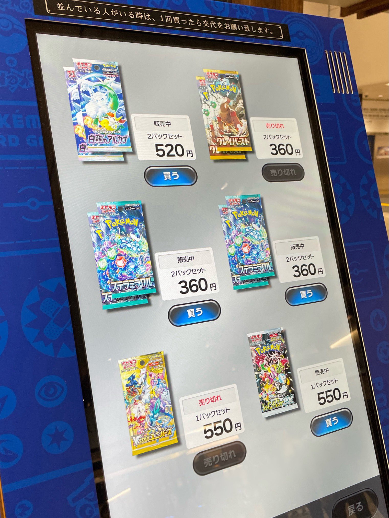 ポケカ自販機では、店頭で購入が難しい拡張パックの購入が可能です!