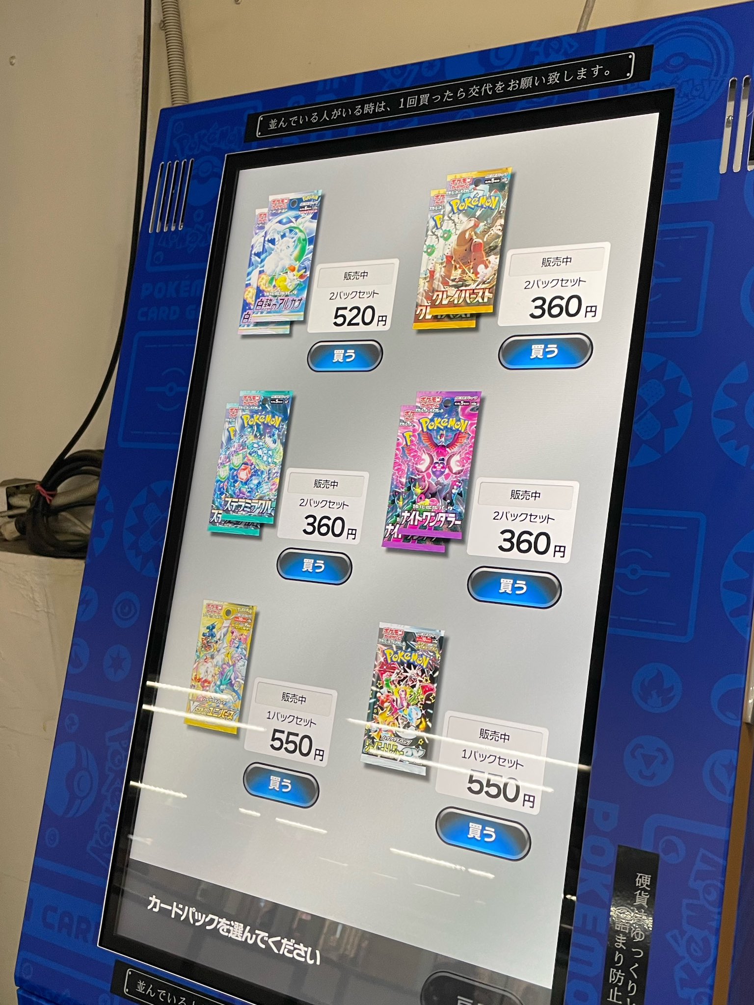 ポケカ自販機では、店頭で購入が難しい拡張パックの購入が可能です!