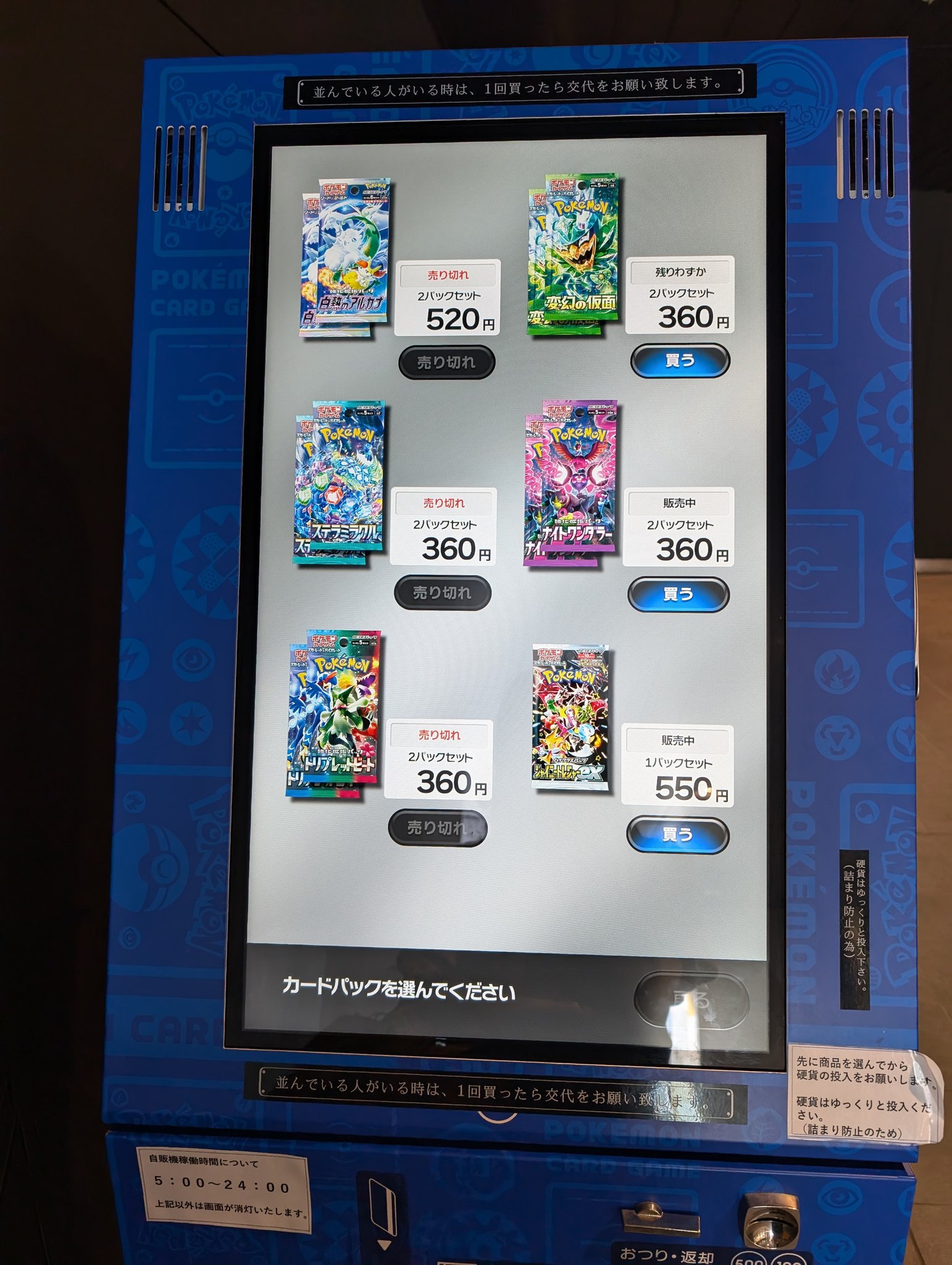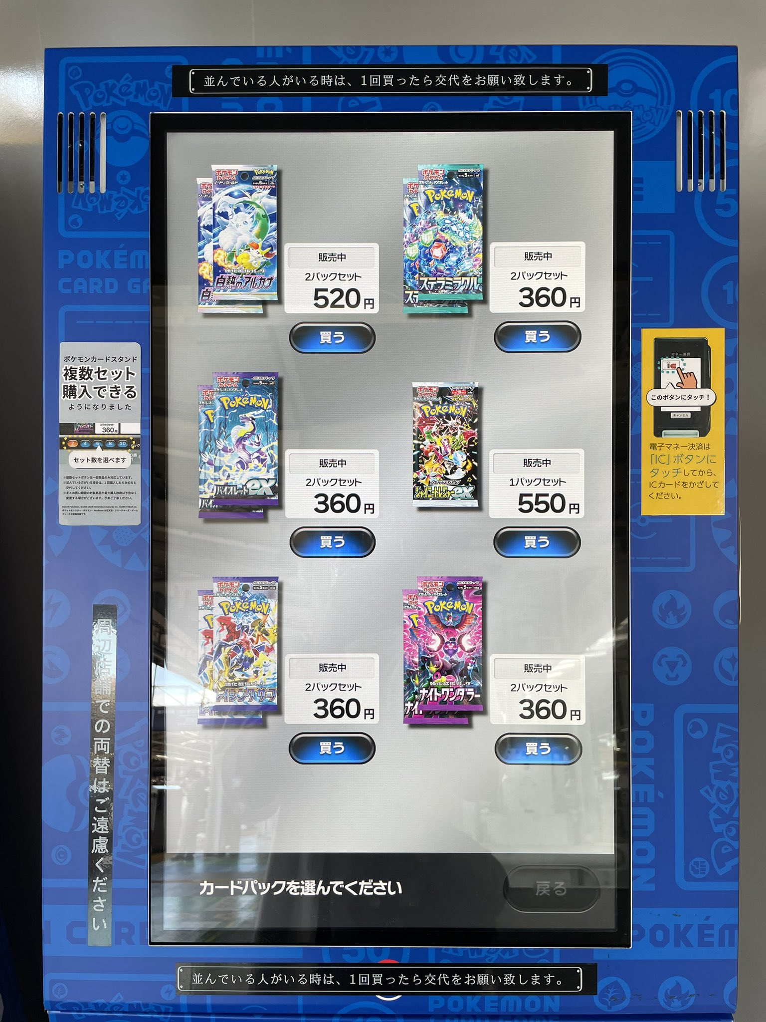 ポケカ自販機では、店頭で購入が難しい拡張パックの購入が可能です!