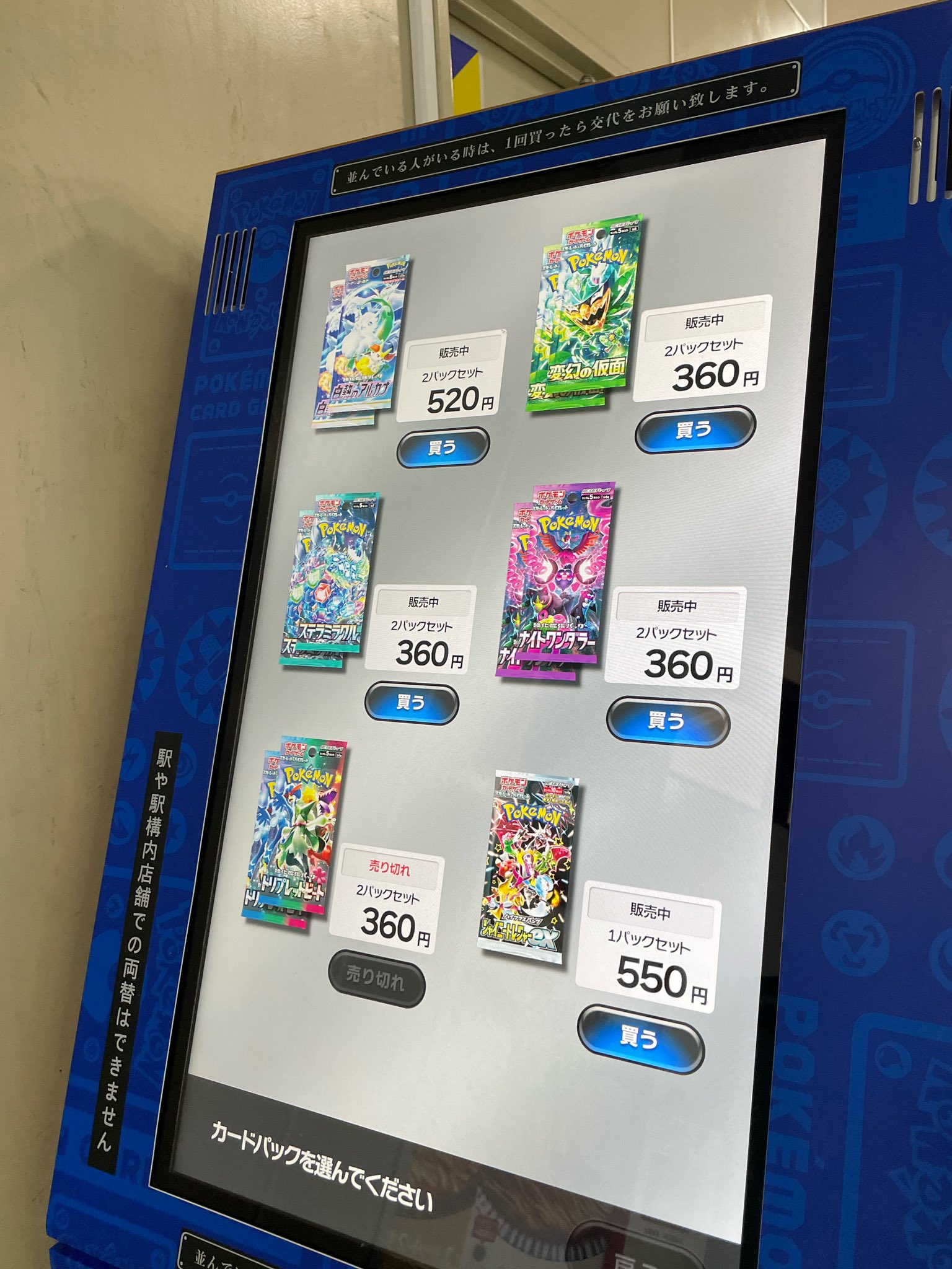 ポケカ自販機では、店頭で購入が難しい拡張パックの購入が可能です!