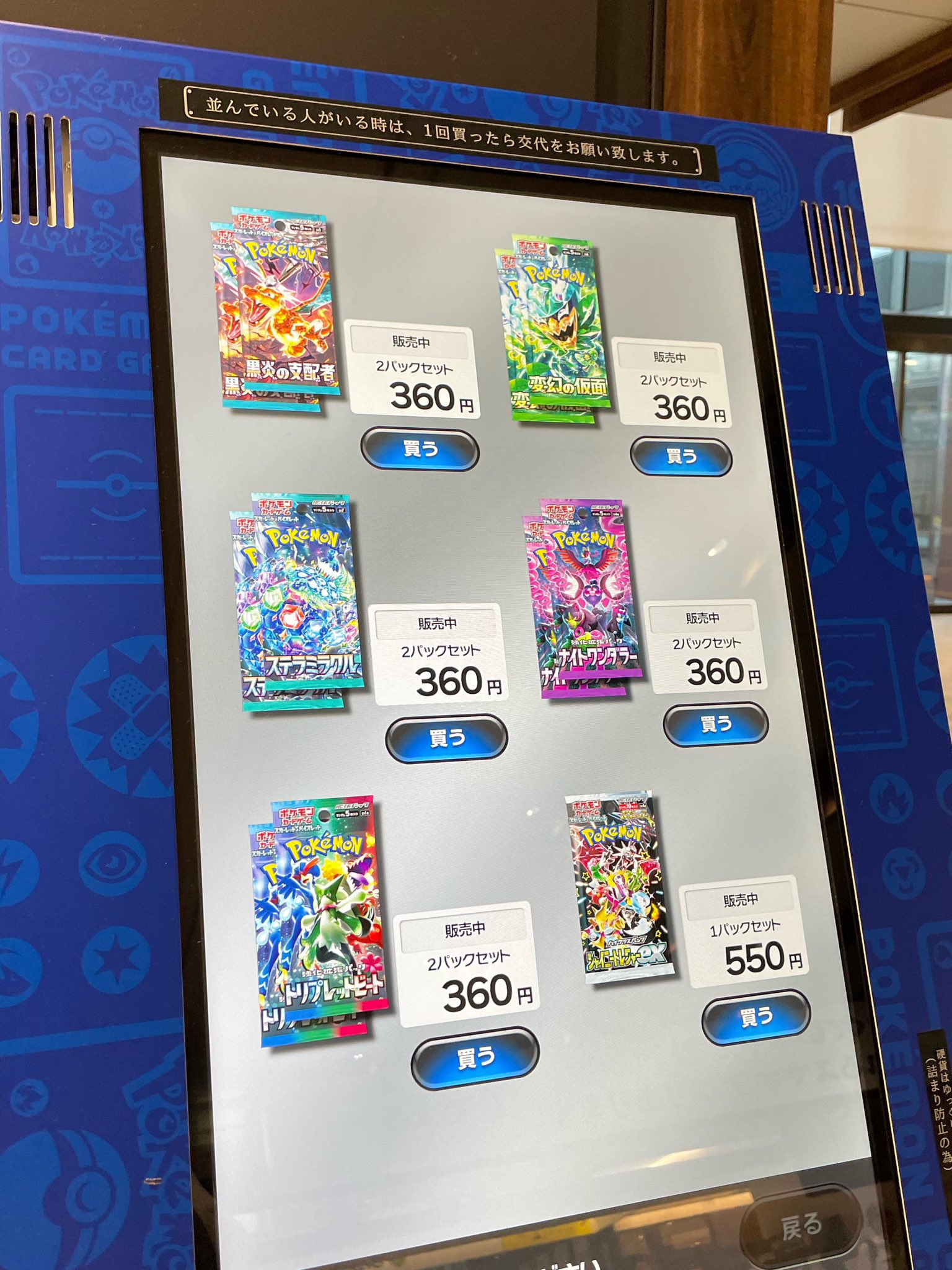 ポケカ自販機では、店頭で購入が難しい拡張パックの購入が可能です!