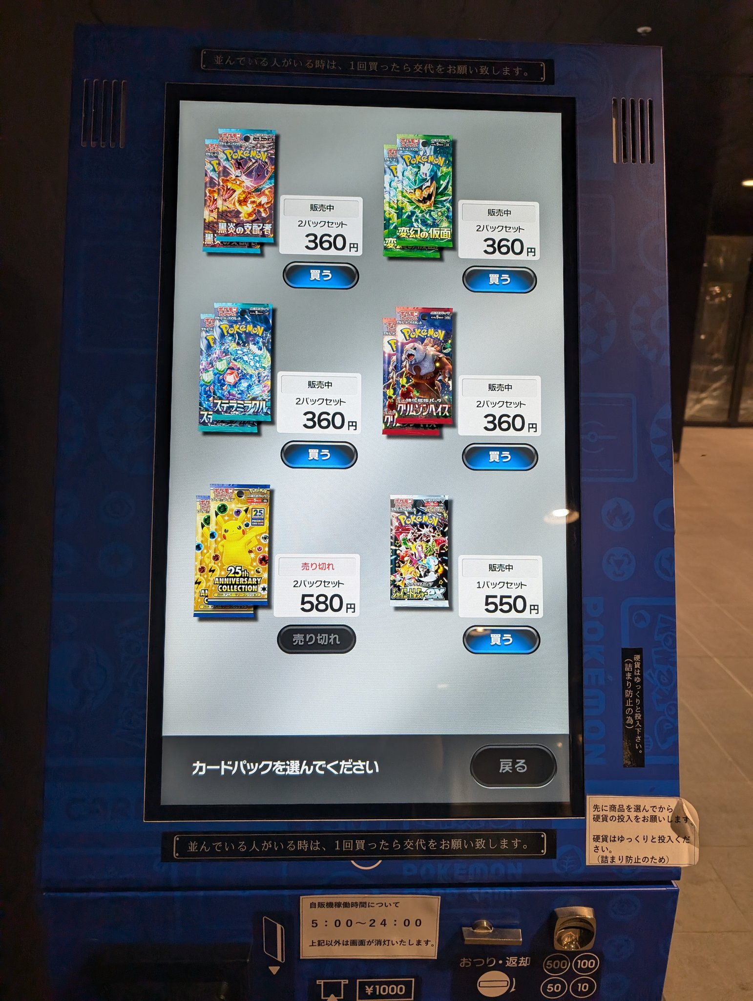 ポケカ自販機では、店頭で購入が難しい拡張パックの購入が可能です!