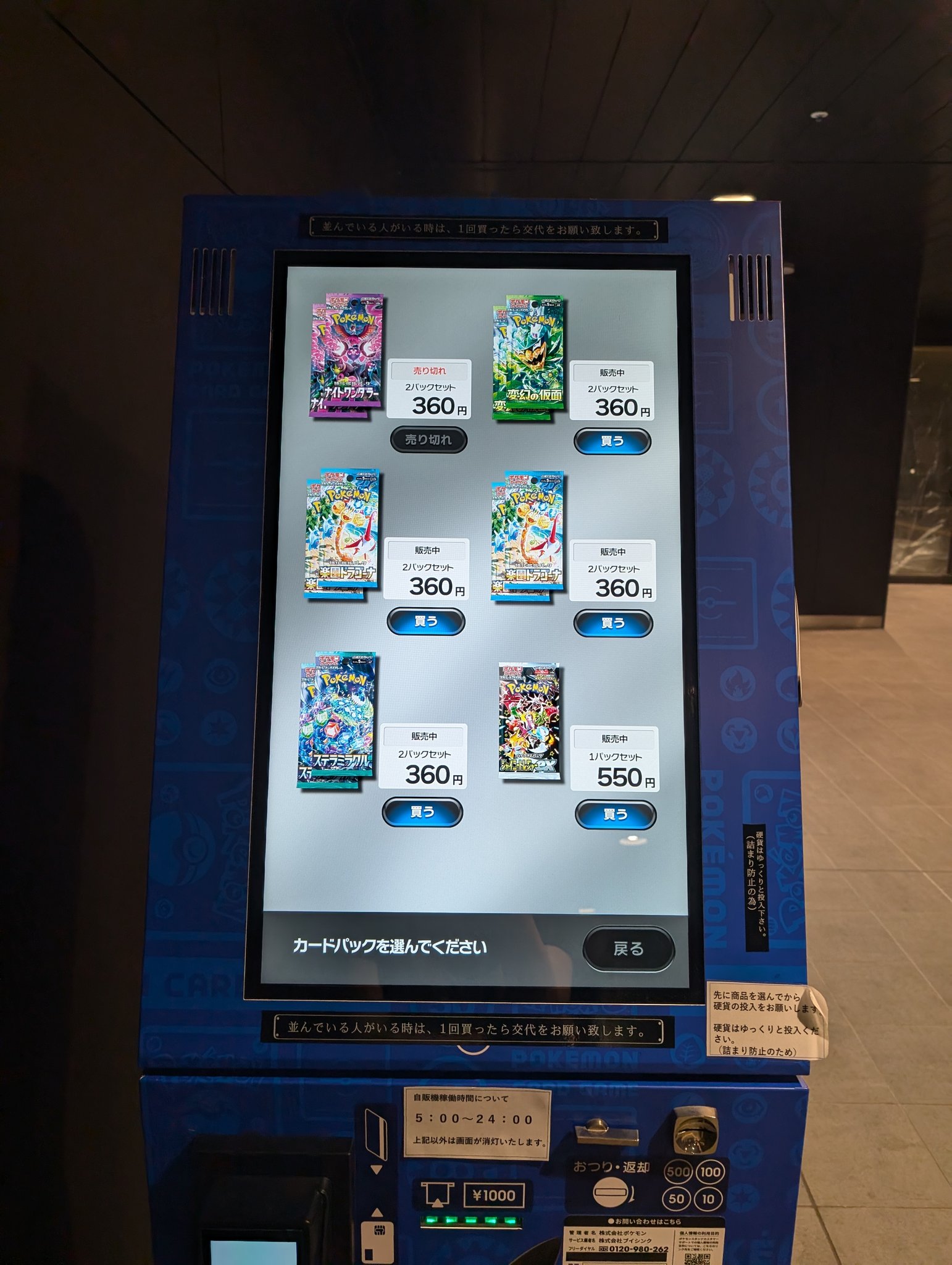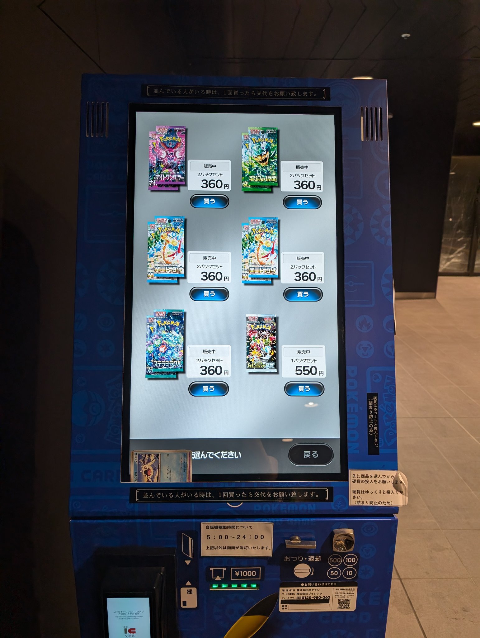 ポケカ自販機では、店頭で購入が難しい拡張パックの購入が可能です!
