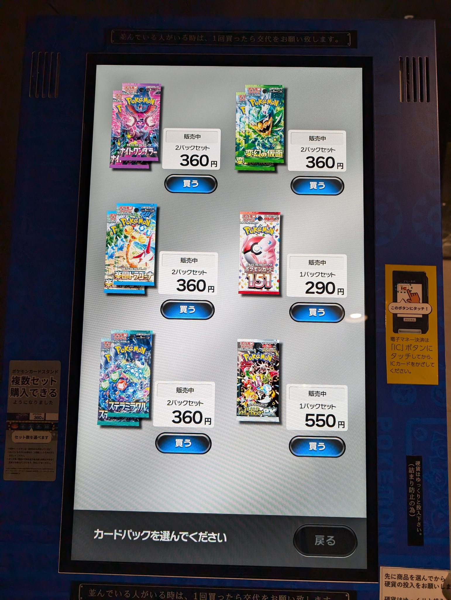 ポケカ自販機では、店頭で購入が難しい拡張パックの購入が可能です!