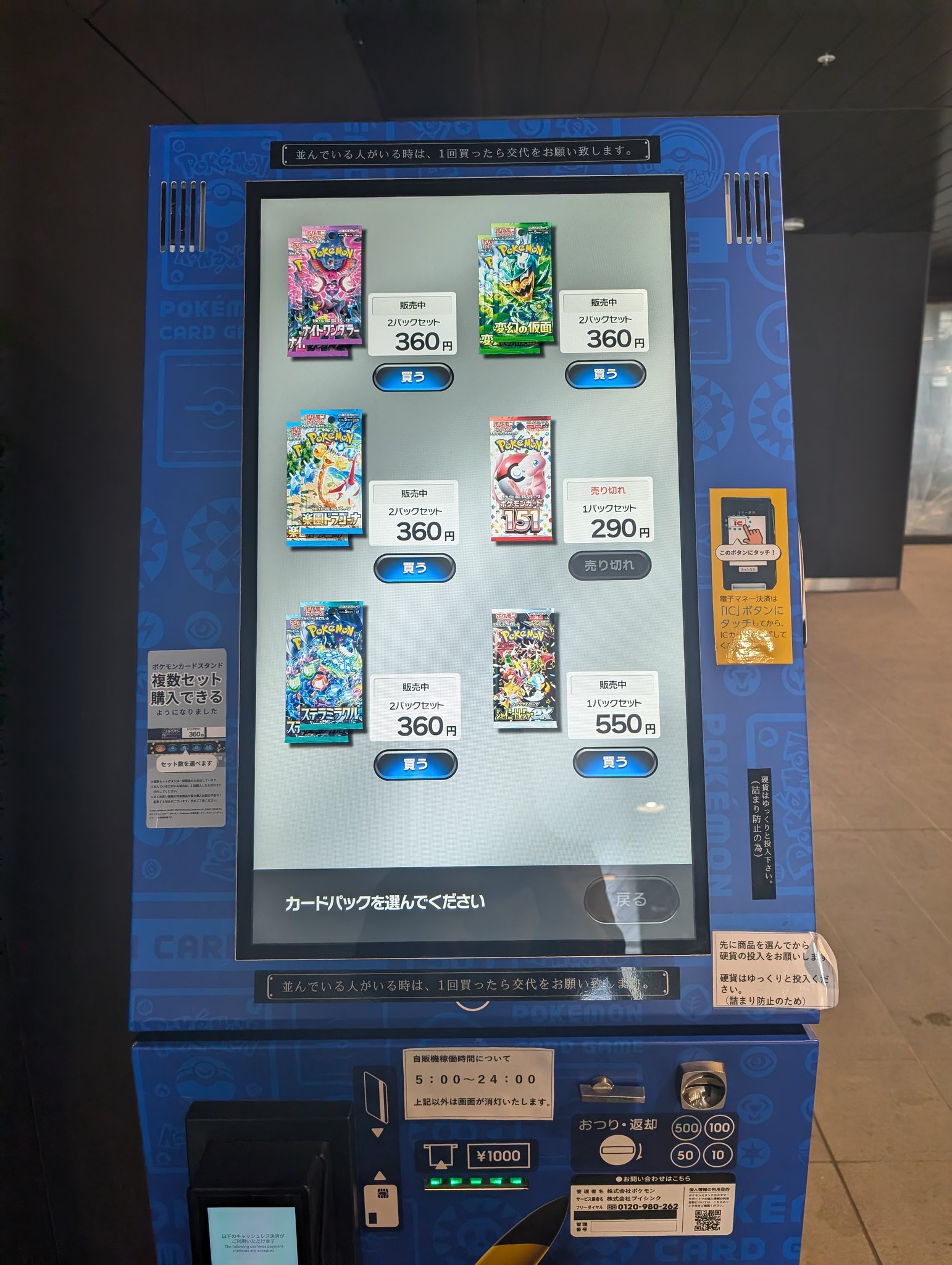 ポケカ自販機では、店頭で購入が難しい拡張パックの購入が可能です!