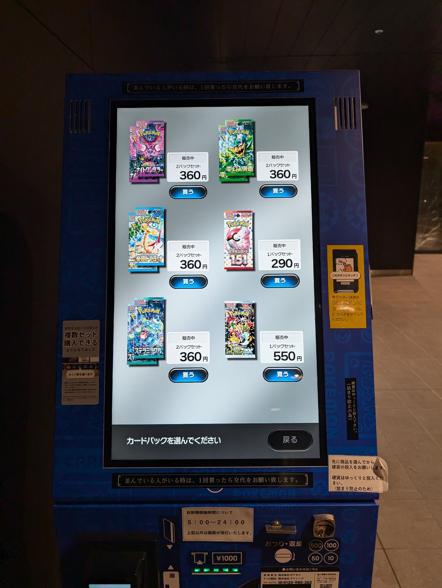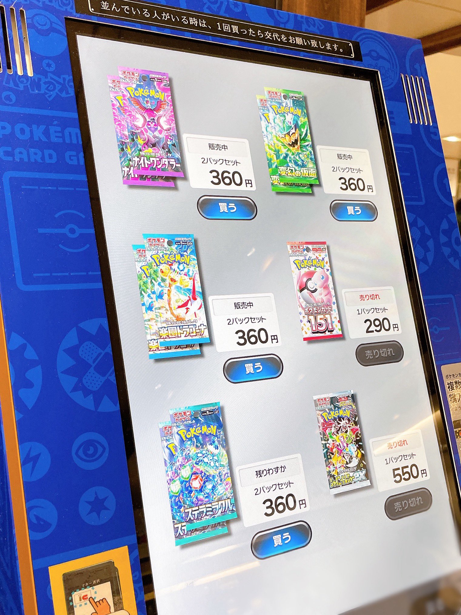 ポケカ自販機では、店頭で購入が難しい拡張パックの購入が可能です!