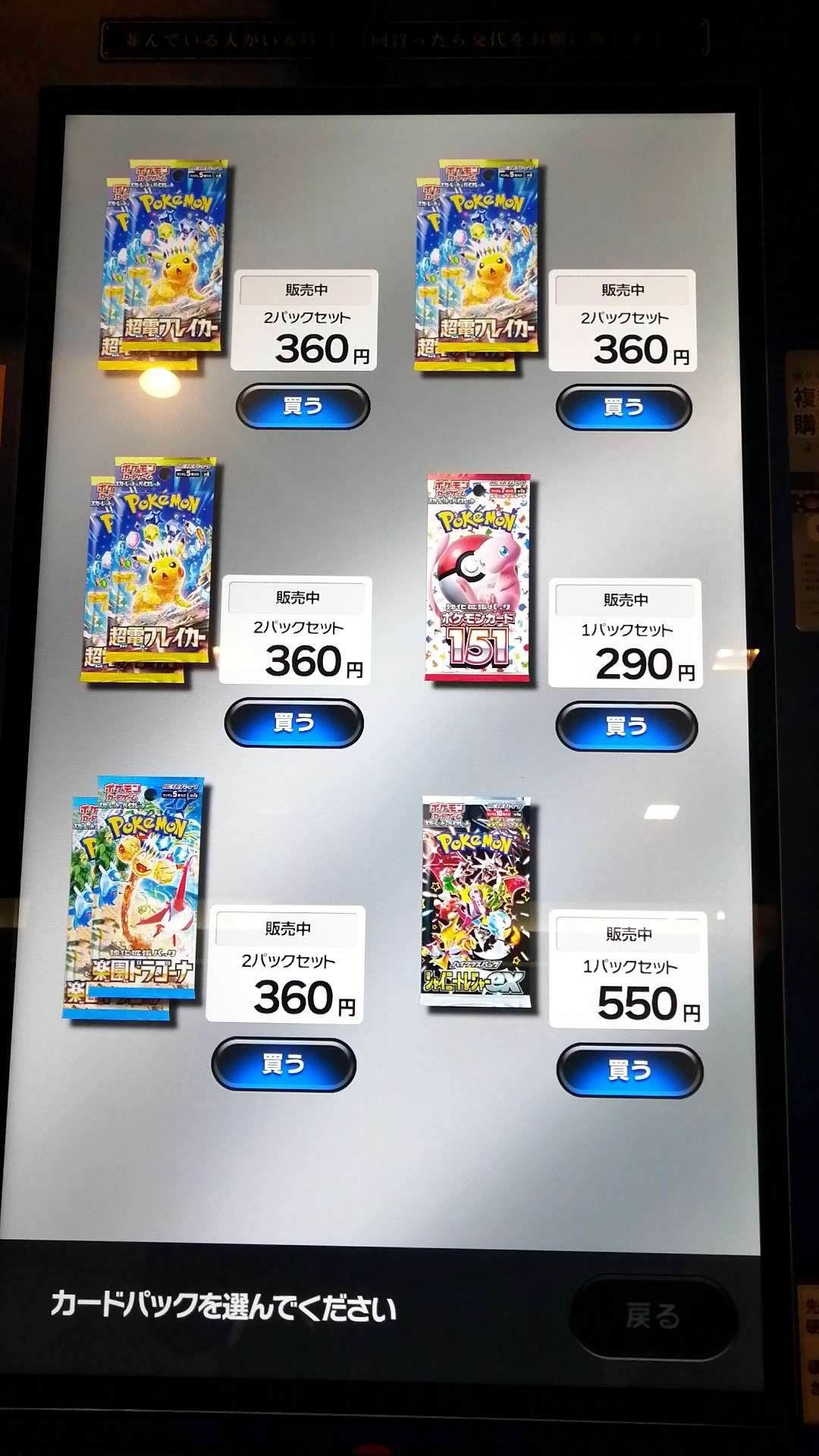 ポケカ自販機では、店頭で購入が難しい拡張パックの購入が可能です!