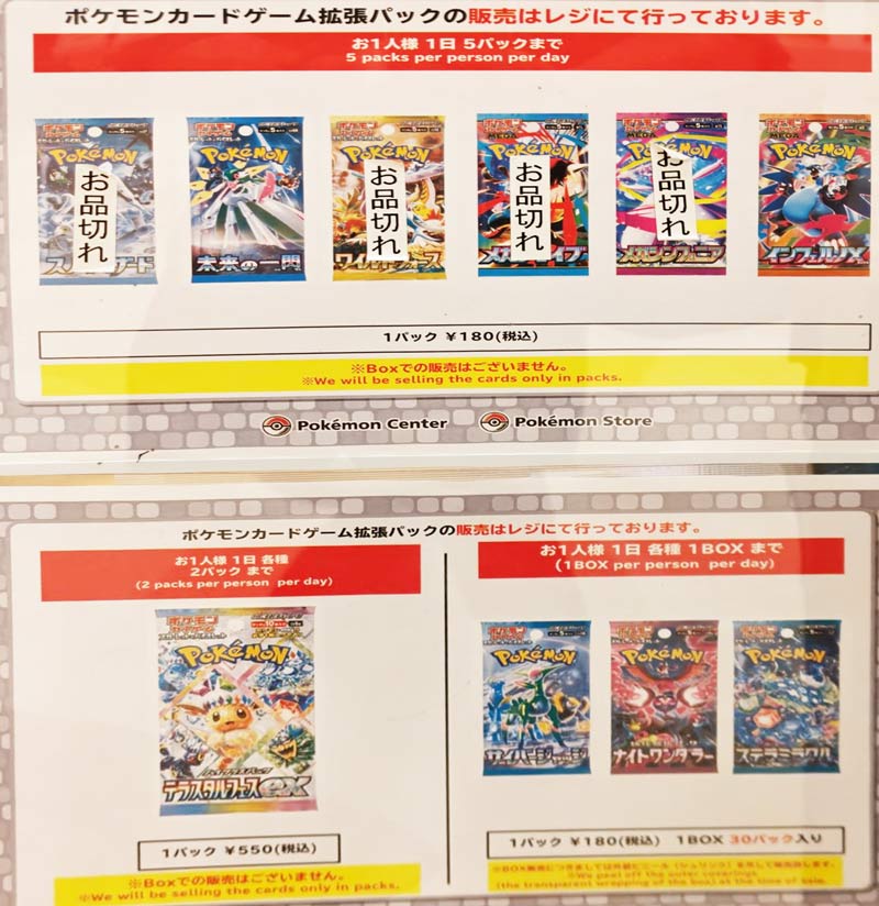ポケカスタンドではパック販売が行われ、ポケモンスタンドではBOX(紙袋付き)販売となります。