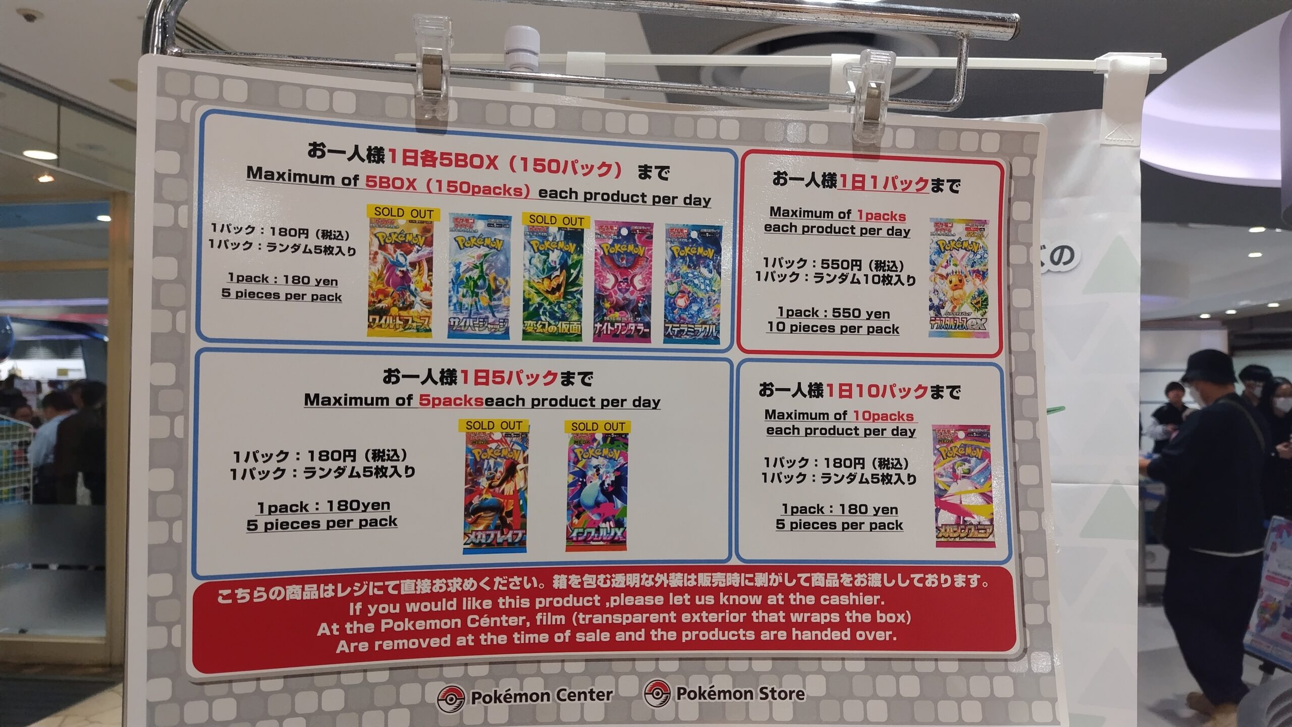 ポケカスタンドではパック販売が行われ、ポケモンスタンドではBOX(紙袋付き)販売となります。