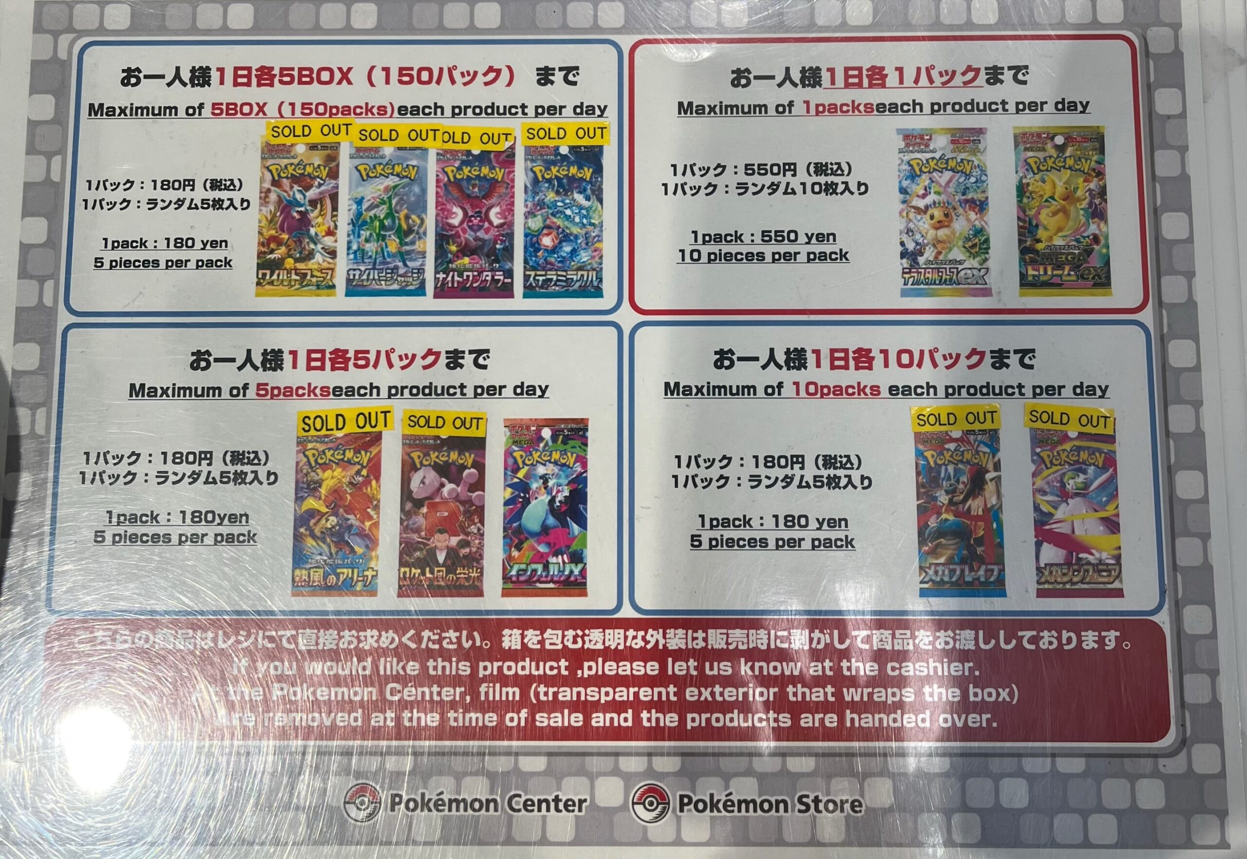 ポケカスタンドではパック販売が行われ、ポケモンスタンドではBOX(紙袋付き)販売となります。