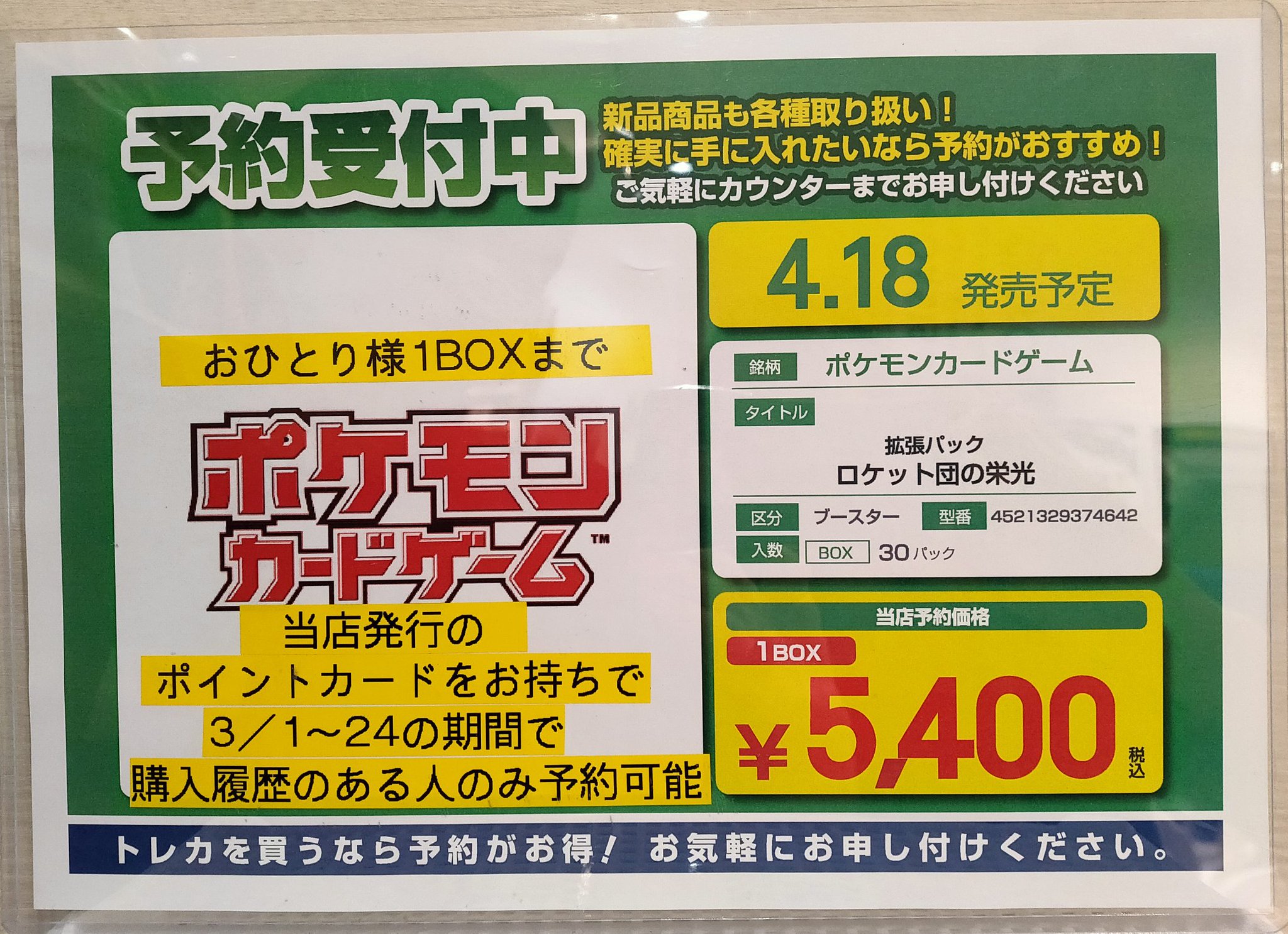 ロケット団の栄光、サイレント抽選受付だった模様。