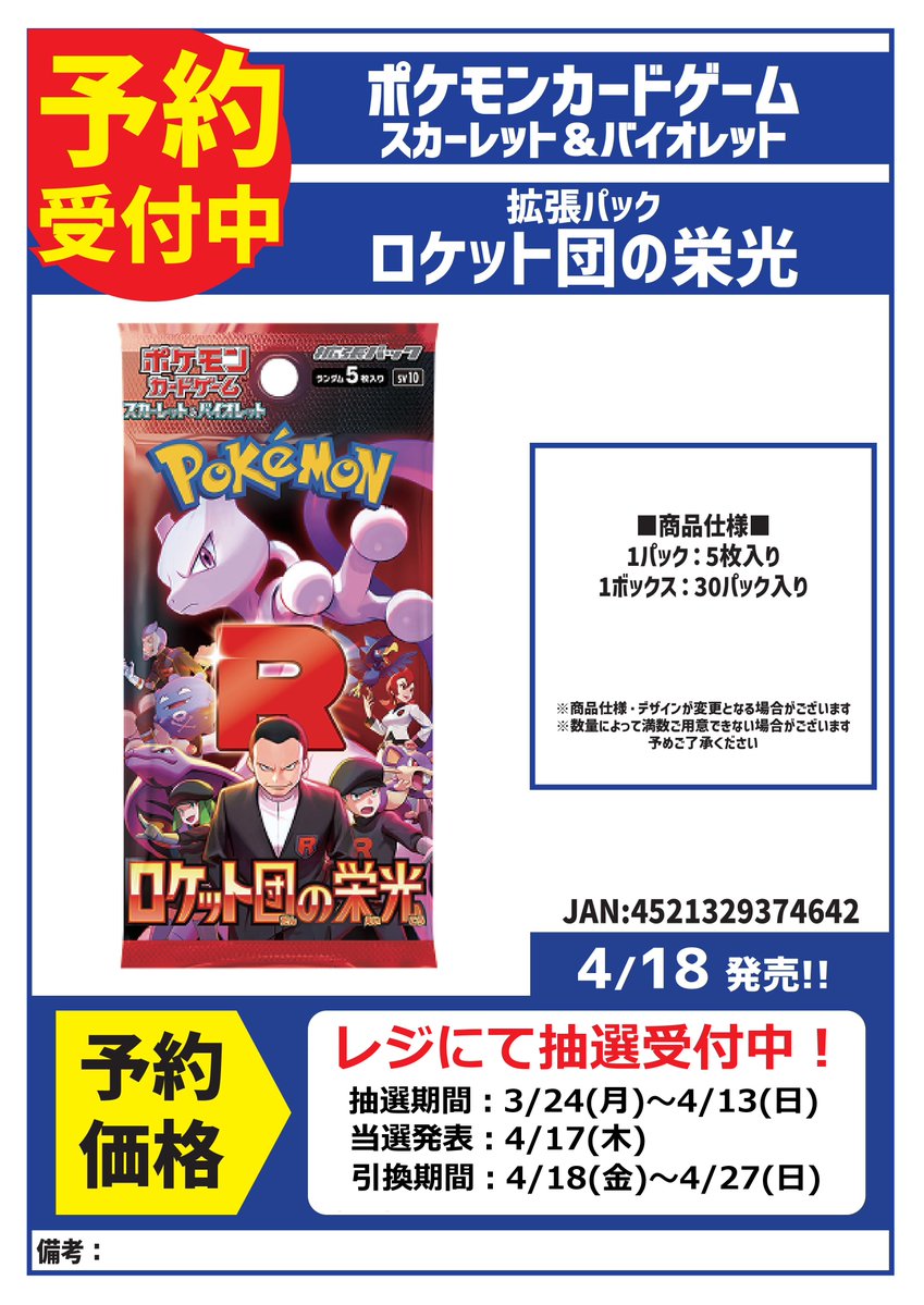 ロケット団の栄光の抽選受付開始です!