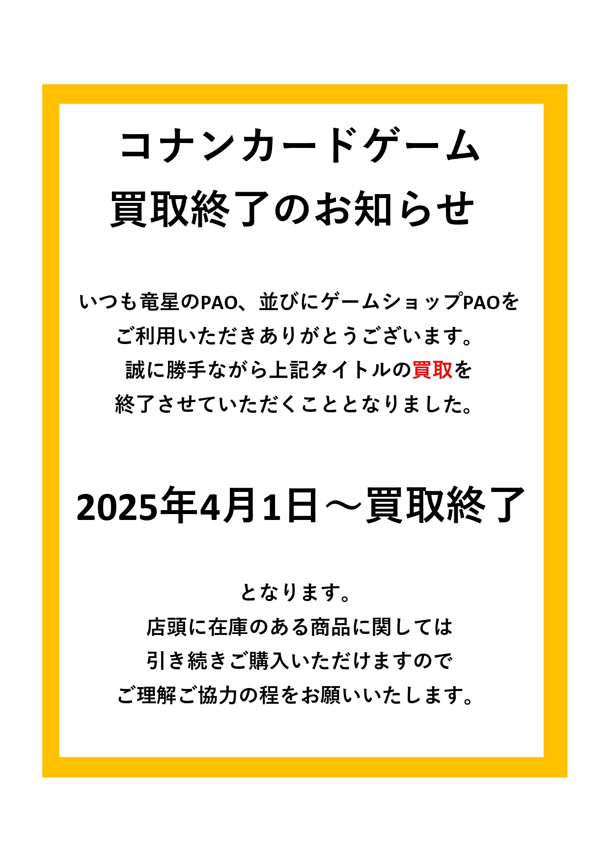 流星のPAO、コナンカードゲームを今日から取り扱い終了。
