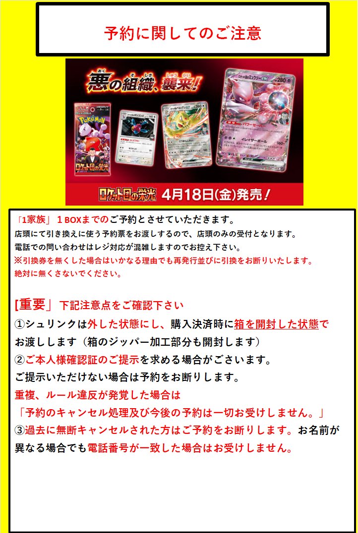 カードラボマルイ海老名店、ロケット団抽選販売予定。