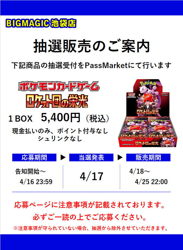 今日4月3日の15時から「ロケット団の栄光」抽選