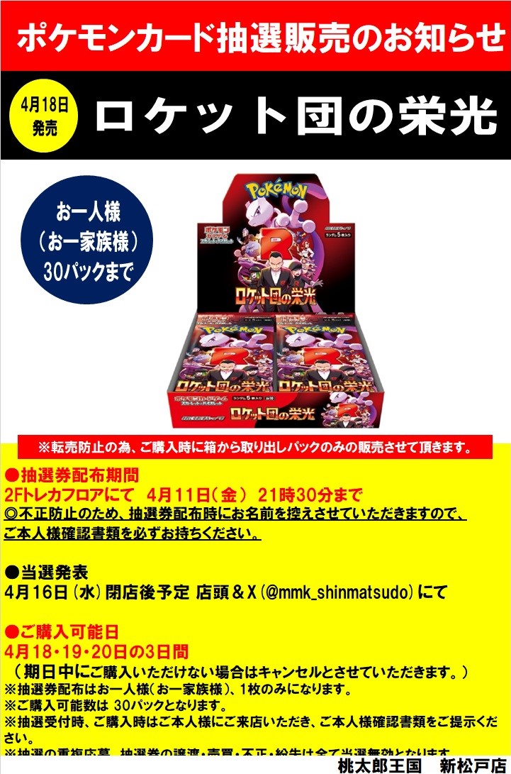 ミント名古屋もロケット団の栄光 抽選