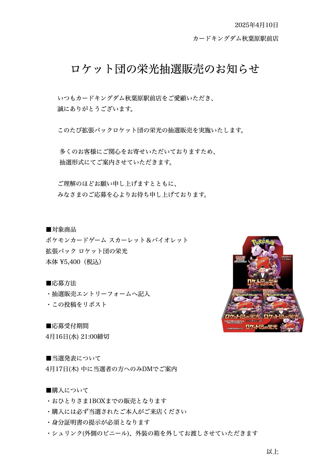 Japan TCG Center 蒲田駅東口店 ロケット団の栄光 抽選