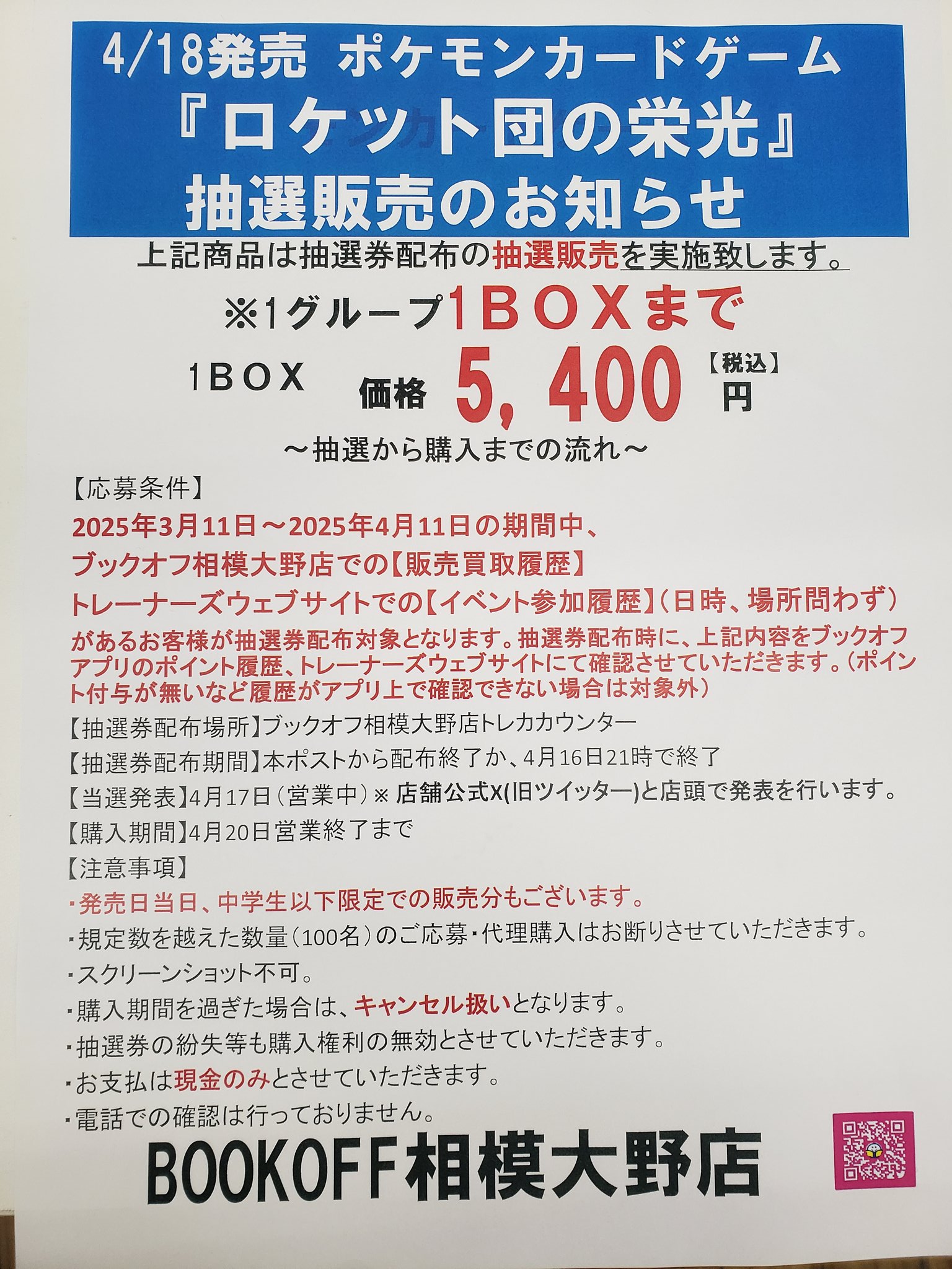 ブックオフ相模大野 ロケット団の栄光 抽選開始