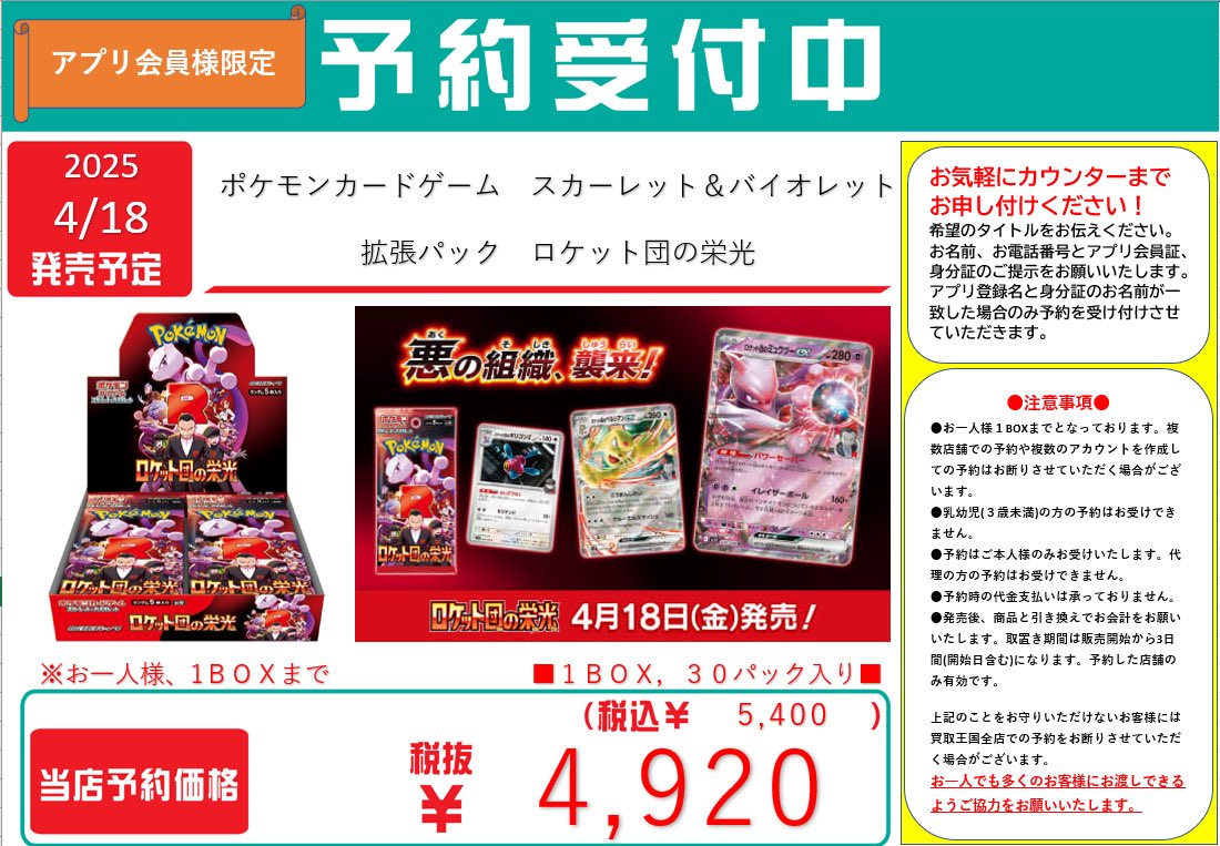 買取王国ロケット団予約開始。対象外店舗もあり。