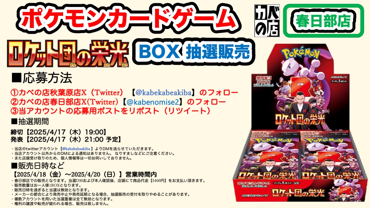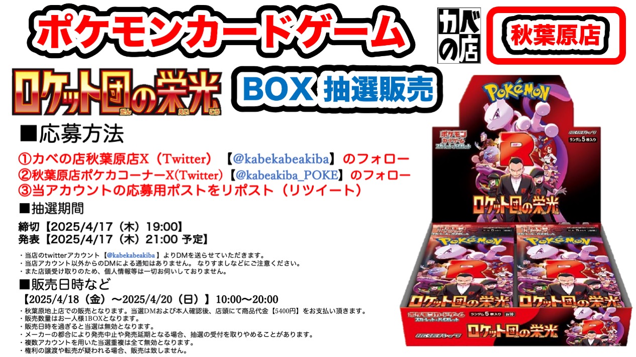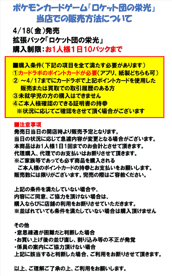 カードラボ名古屋大須、ロケット団の栄光は発売日に先着順10P販売